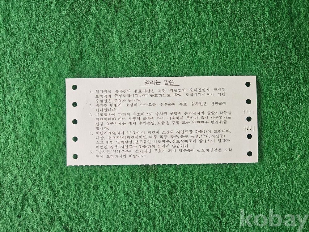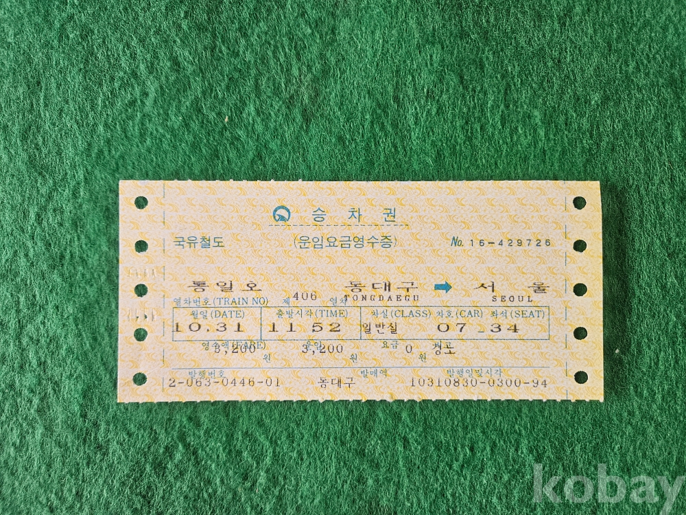 - 열차 승차권 통일호 " 동대구 - 서울 "