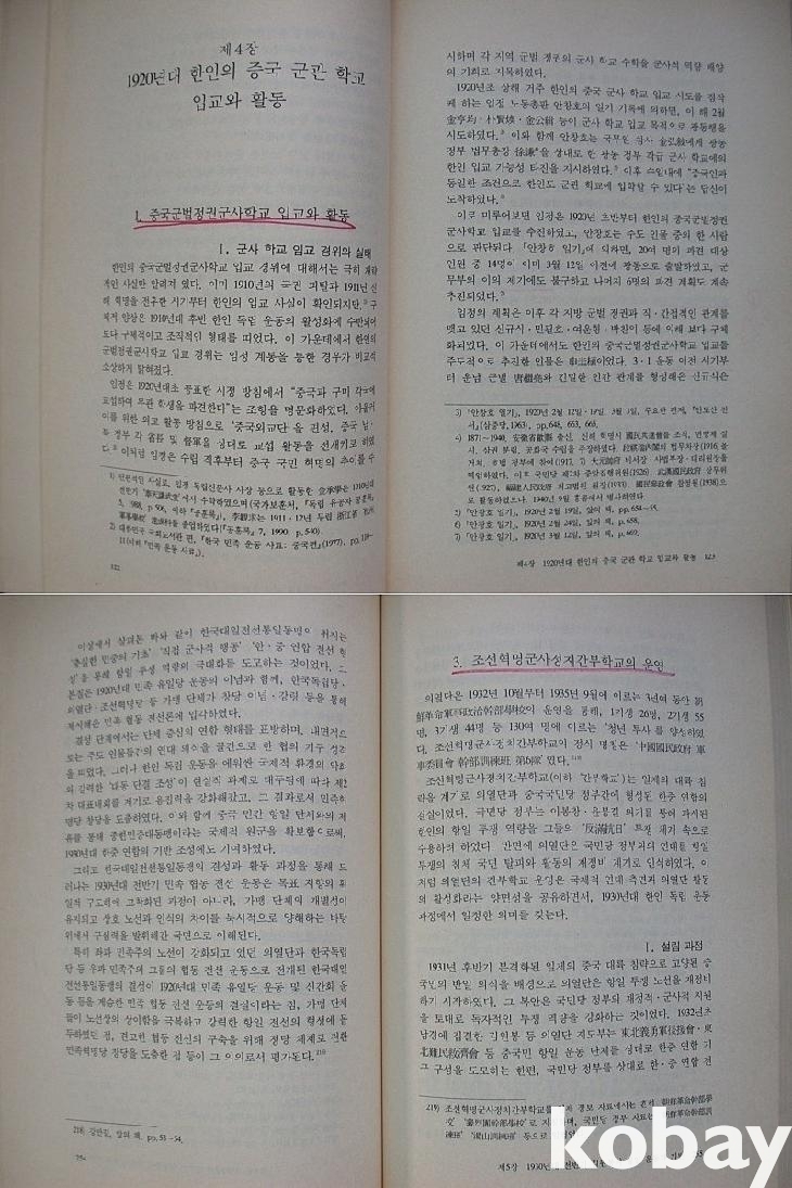 머리말에서 저자는 "중국 지역에서 전개된 한인독립운동의 흐름을 중국군관학교를 매개로 축적된 항일투쟁 역량의 생성과정과 그 실체를 중심으로 분석한 것"이라고 하였고, 김구와 김원봉이 1930년대 중반에 구축한 협동전선은 해방과 더불어 냉전체제를 배경으로 한 세력들에게 소멸되고 말았다고 하였다. 아울러 건국대 박사학위 논문을 펴낸다는 말도 있다.