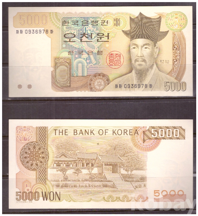 (한국지폐) 율곡 이이 5000원 (차자0936978바) 미사용