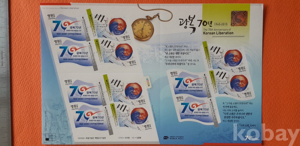 2015 광복 70주년 기념 스티커형 영원우표 12매 전지 입니다.
