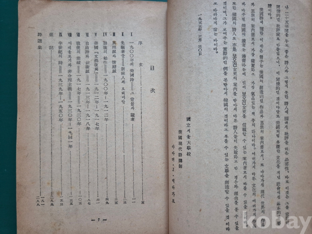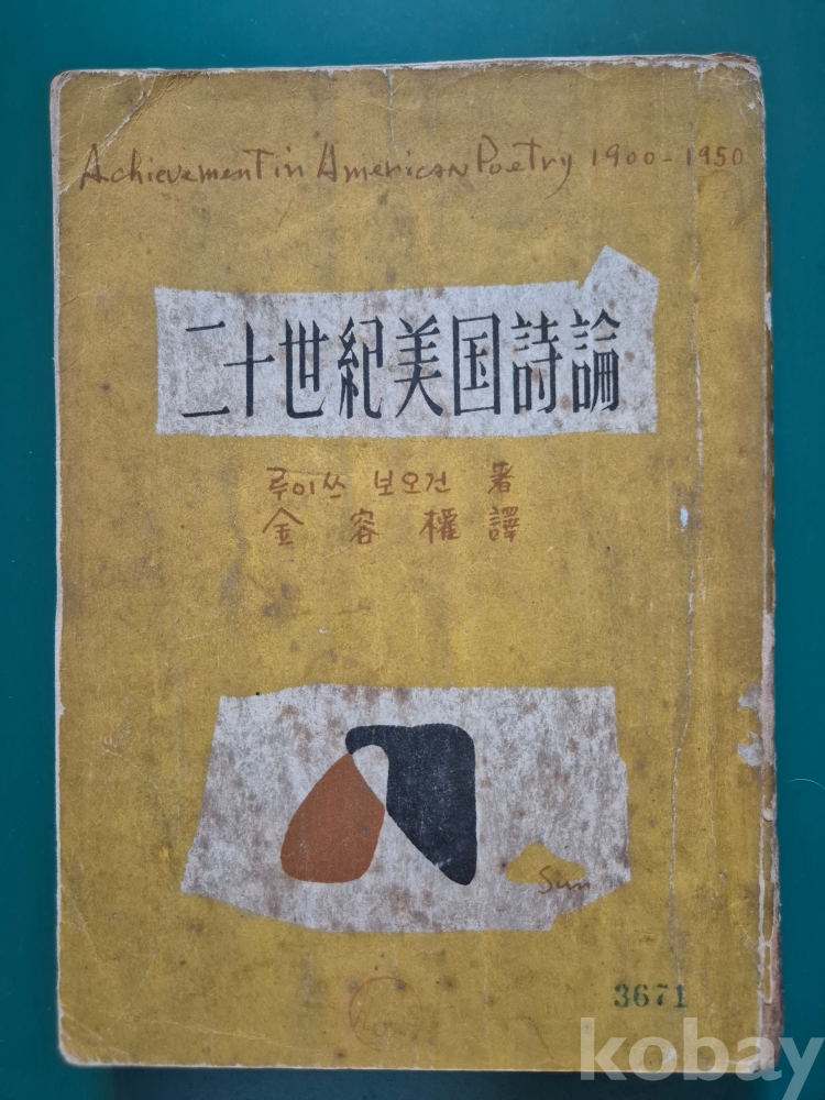 1955년 발간한 시론집 (김용권 옮김) 『二十世紀 美國詩論』
