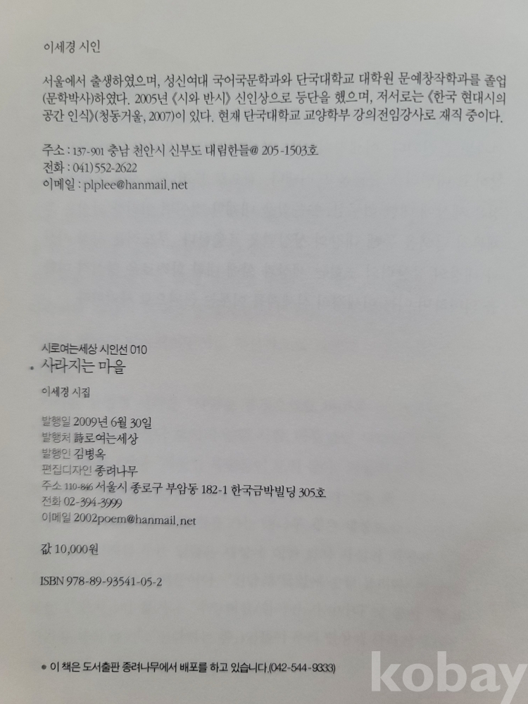 「詩로여는세상」에서 '시로여는세상 시인선[010]'으로 발행.