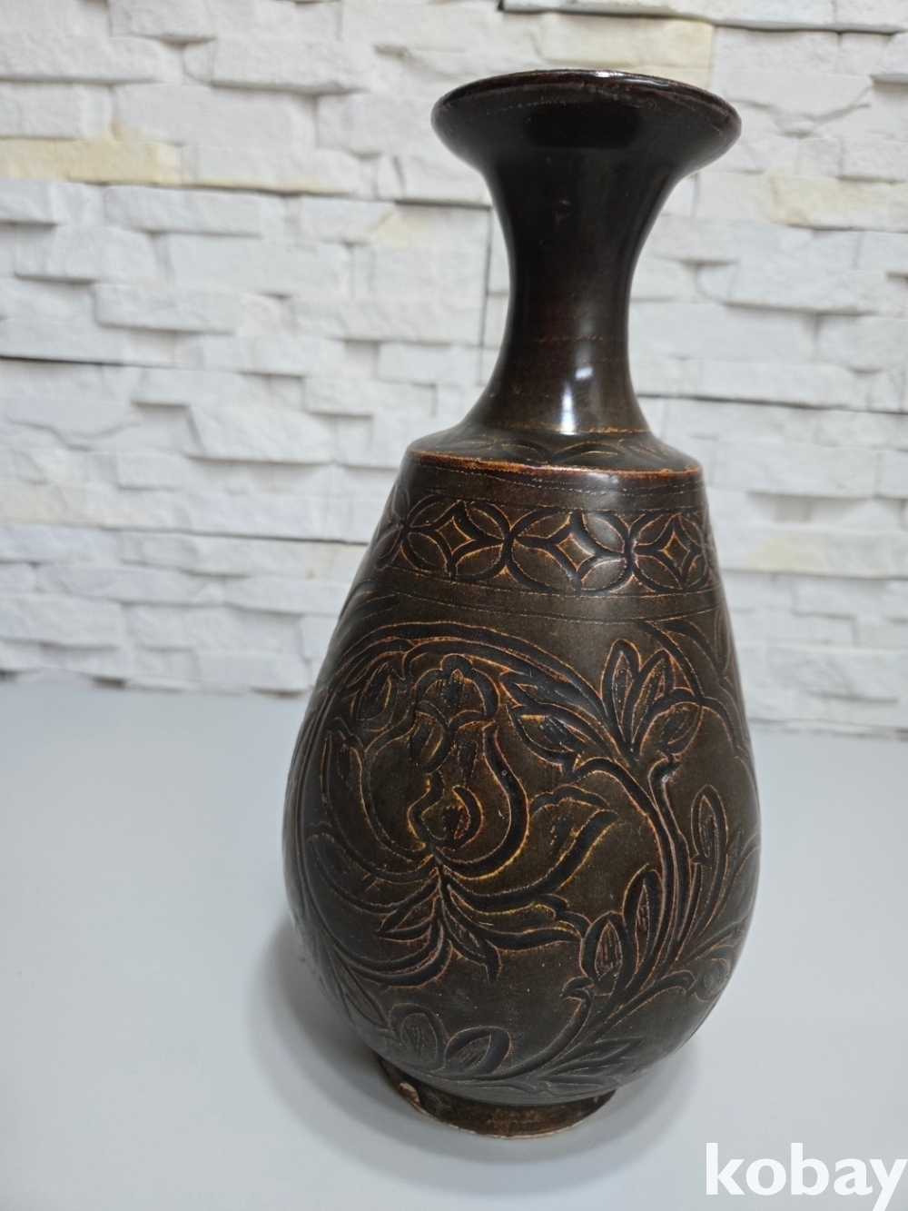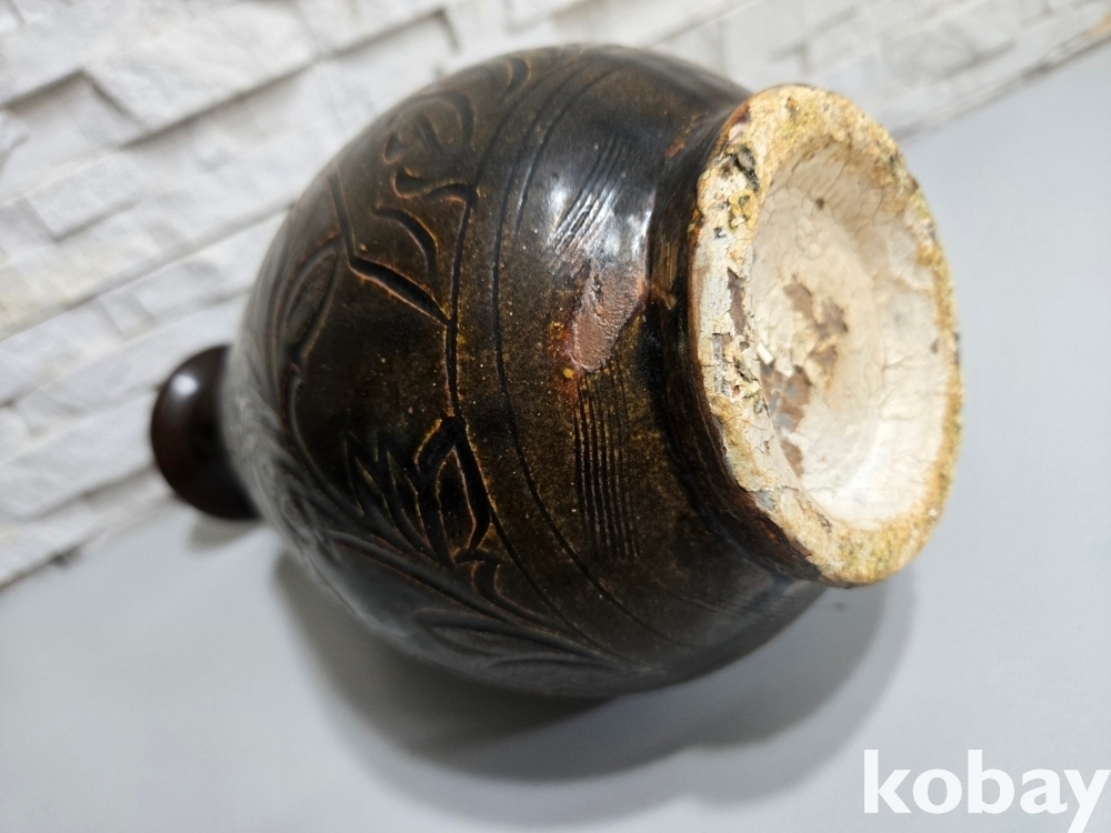연꽃이 음각으로 표현된 도자기 입니다.