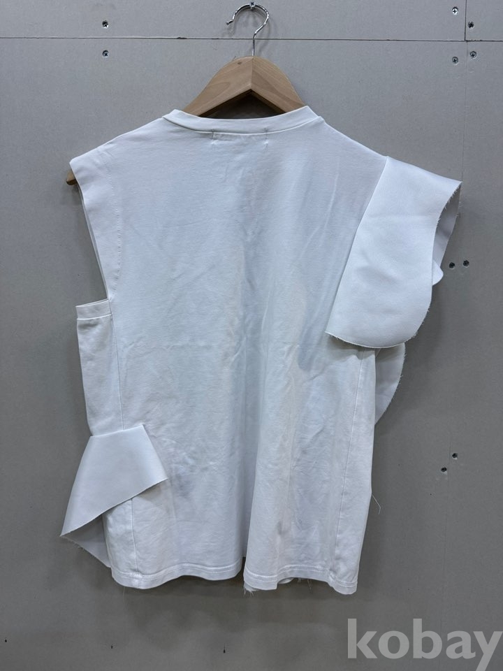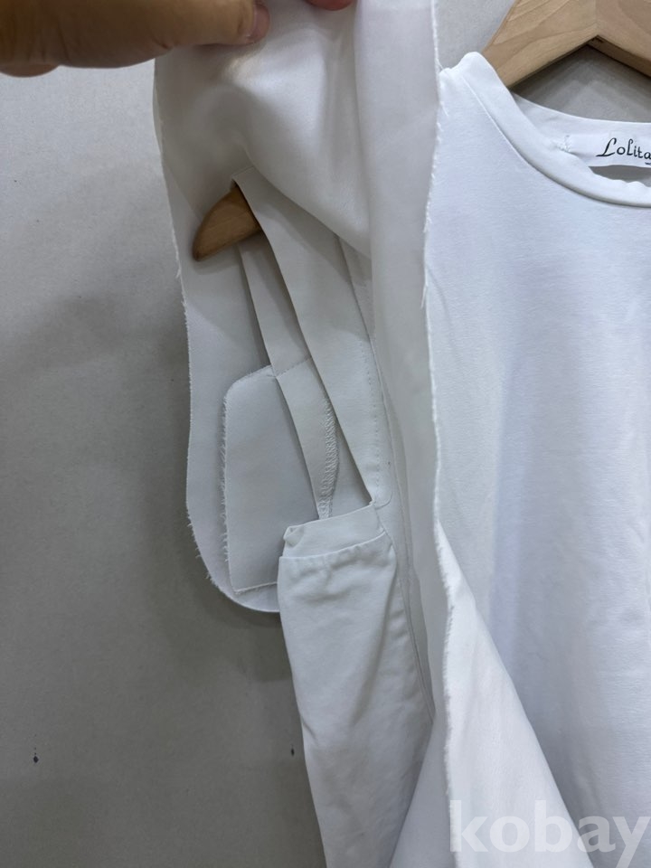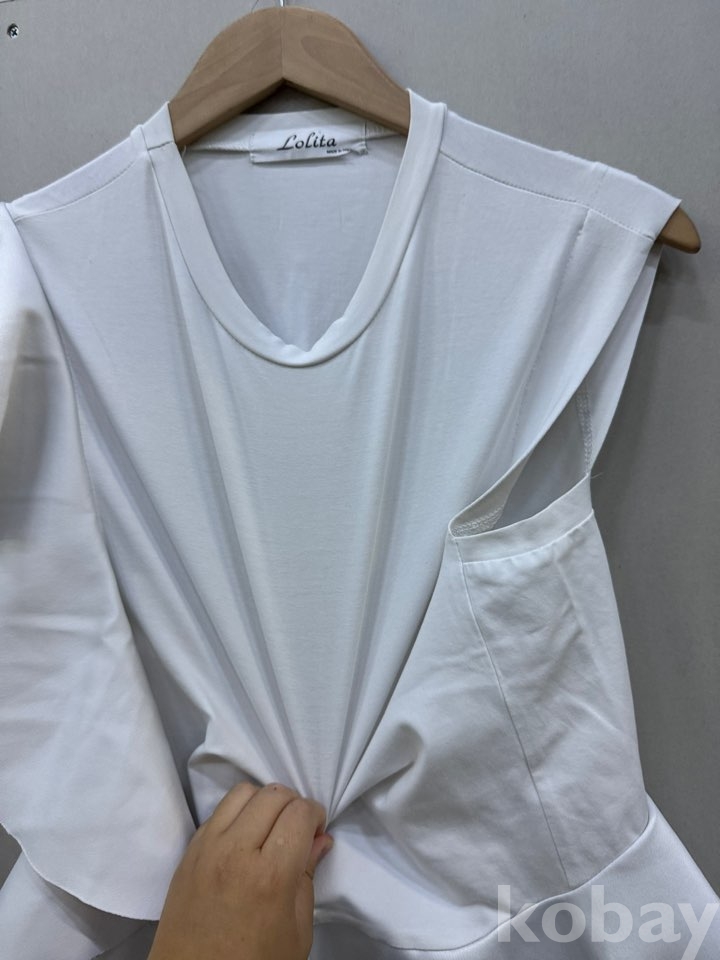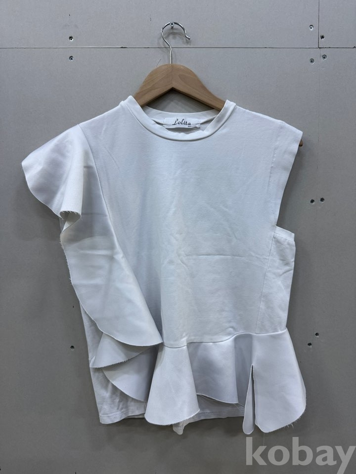 [천원옷장] #14 로리따 여성 언밸런스 러플 블라우스 화이트 프릴 슬리브리스 탑 55