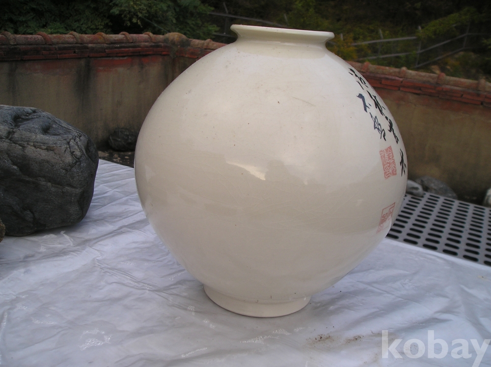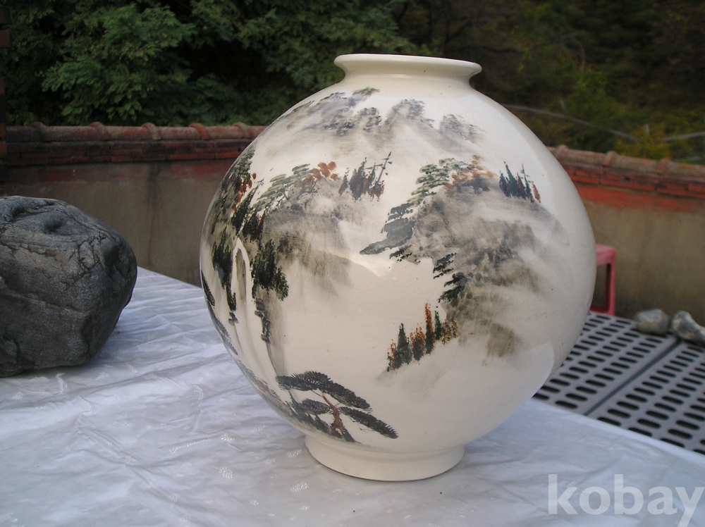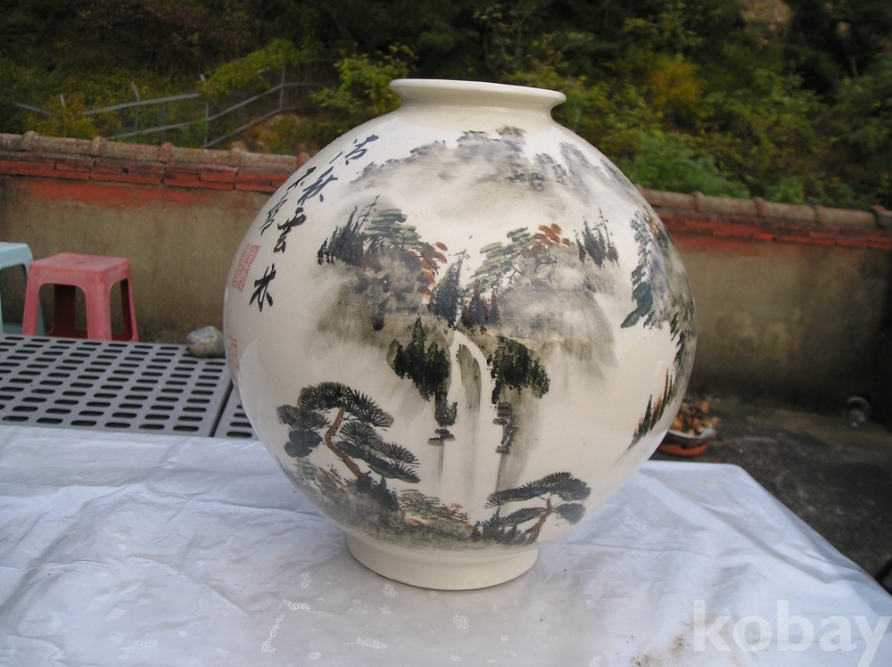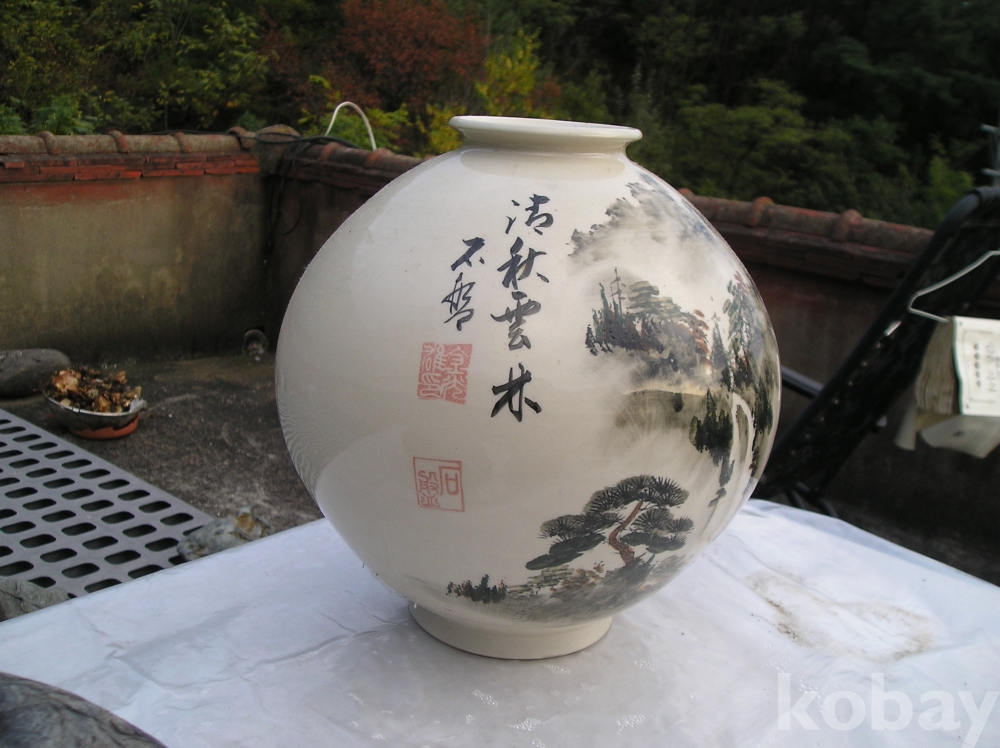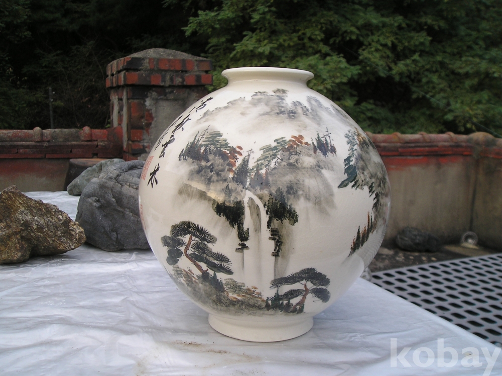 잘 그려진 산수화가 일품인 장식용 도자기.