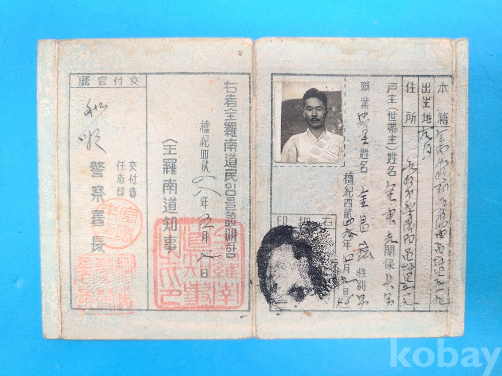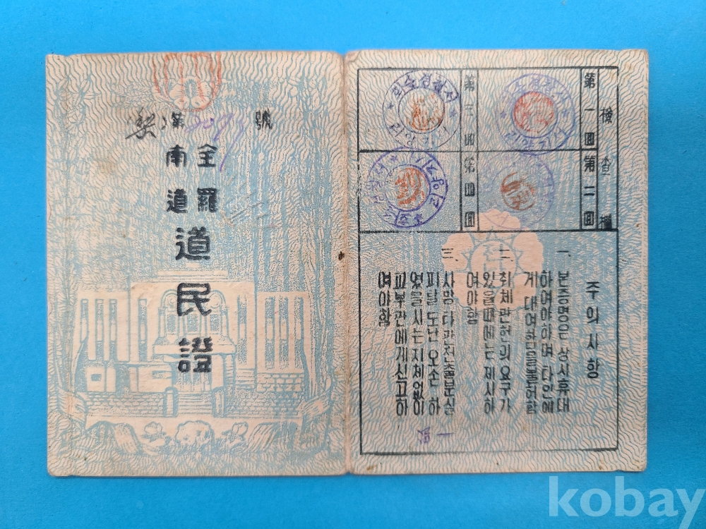 **** 1955년5월7일 전라남도지사가 발급한 [全羅南道 道民證] 화순경찰서장이 교부 하였다