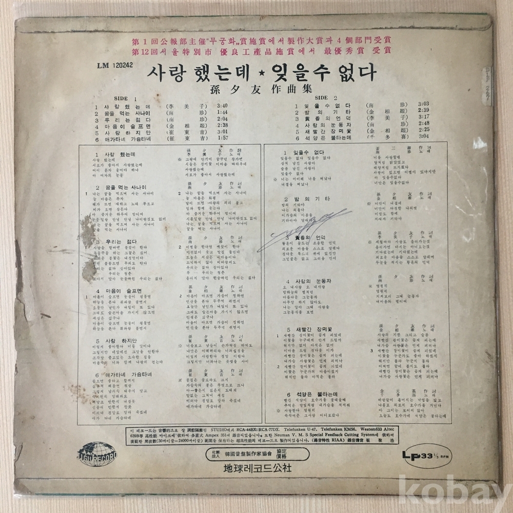 . 가요음반 대부분은 휘어짐이나 손상을 방지하기 위해 무지싱글자킷을 하나 더 사용하여 보관되었던 음반들입니다.