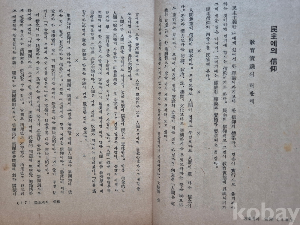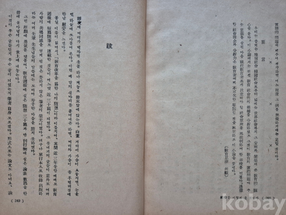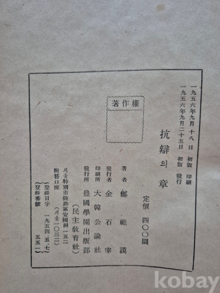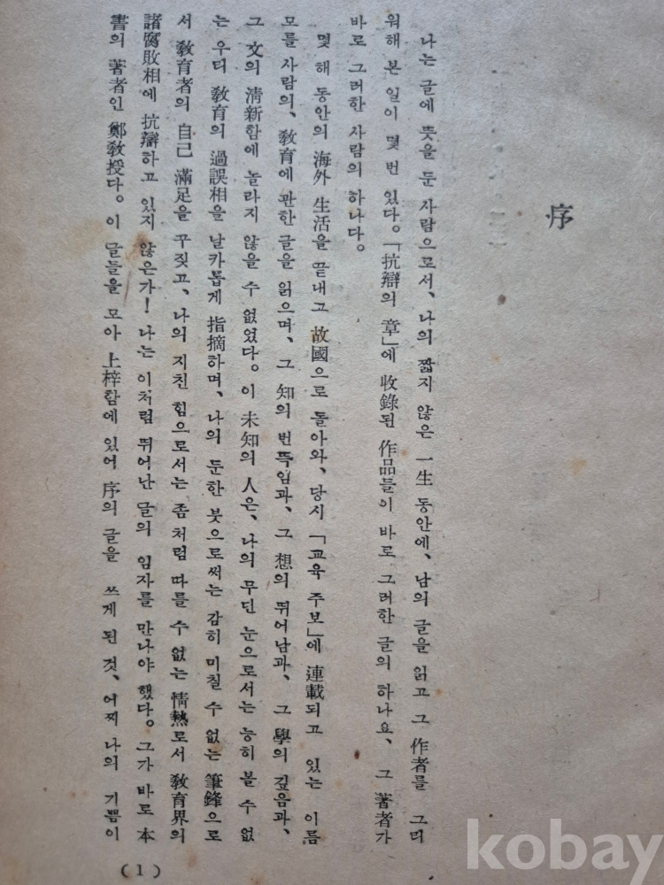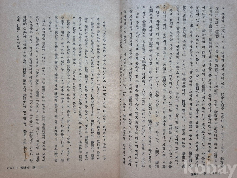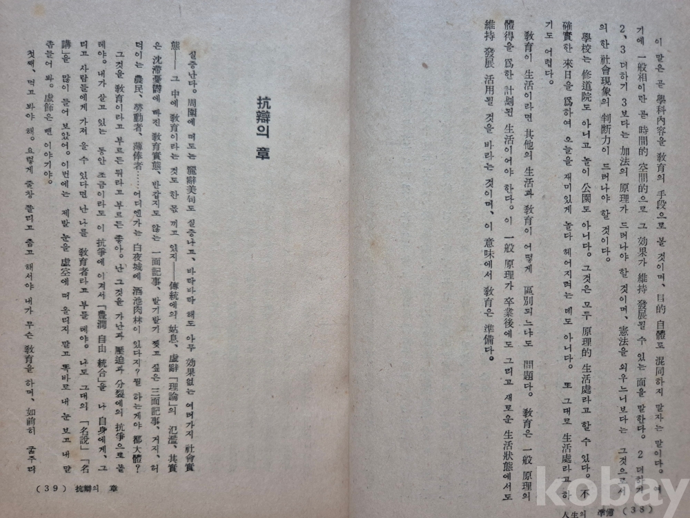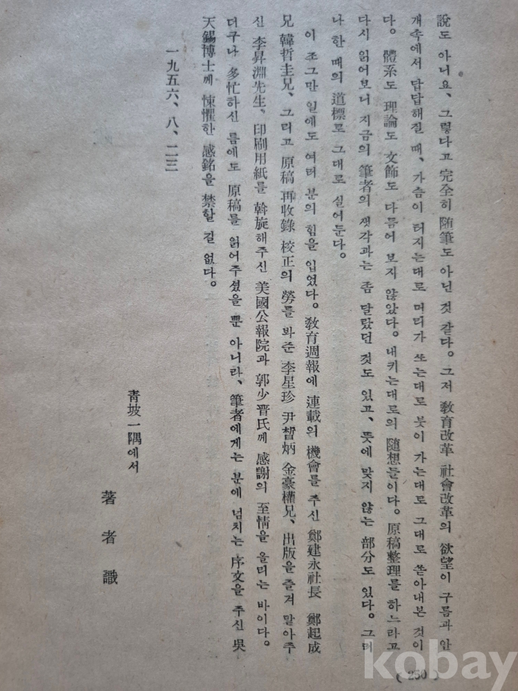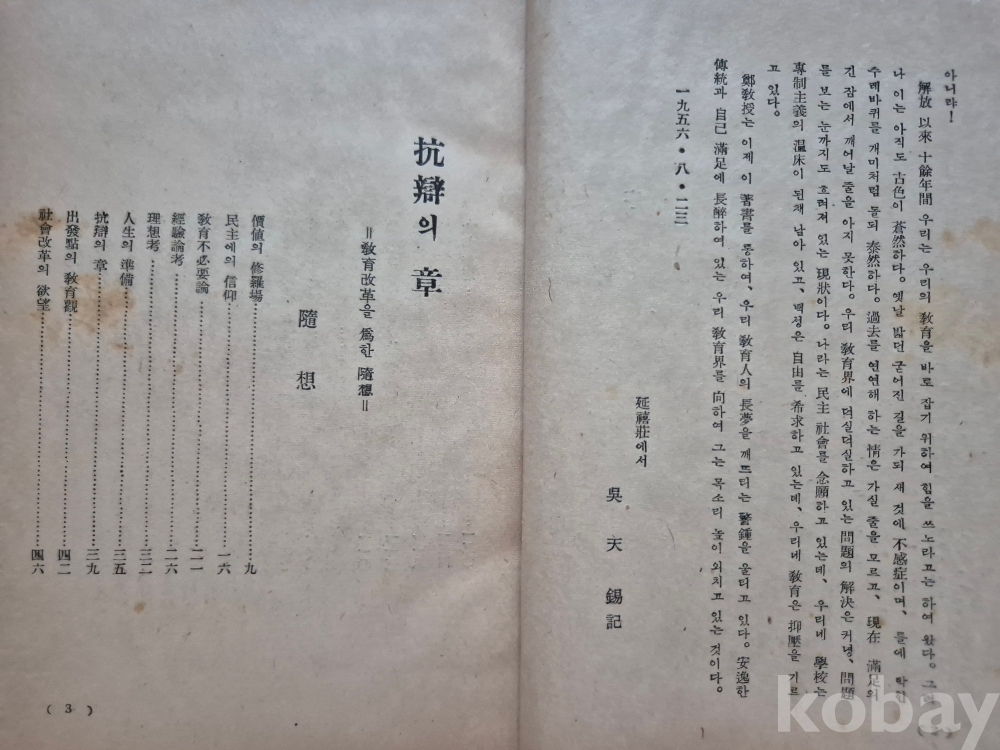 1956년 발간한 교육 수상집 『抗辯의 章』