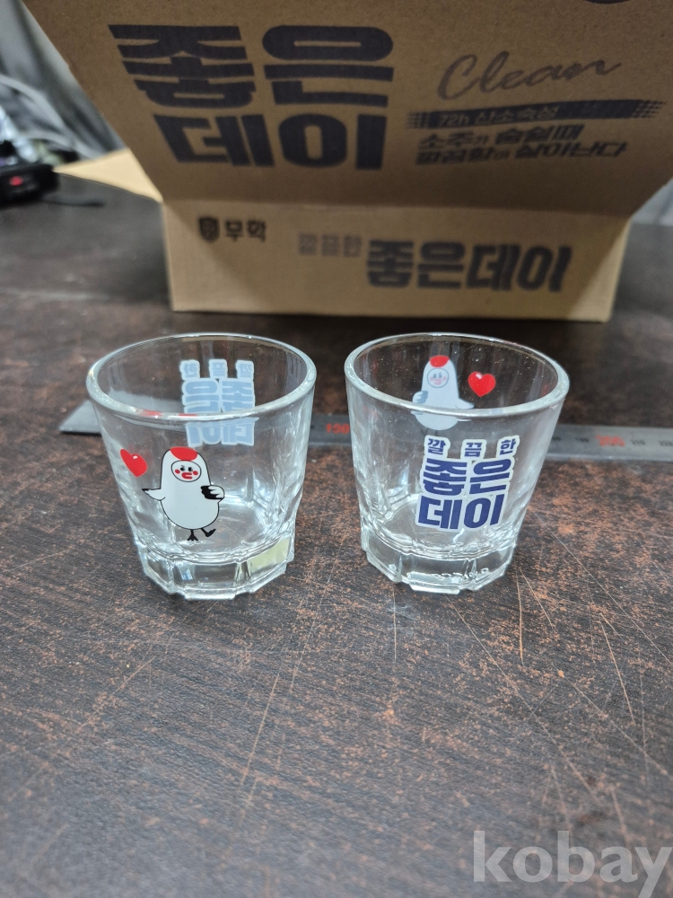 무학 깔끔한 좋은데이 소주잔 20본입 박스품 미사용품 20*25*6