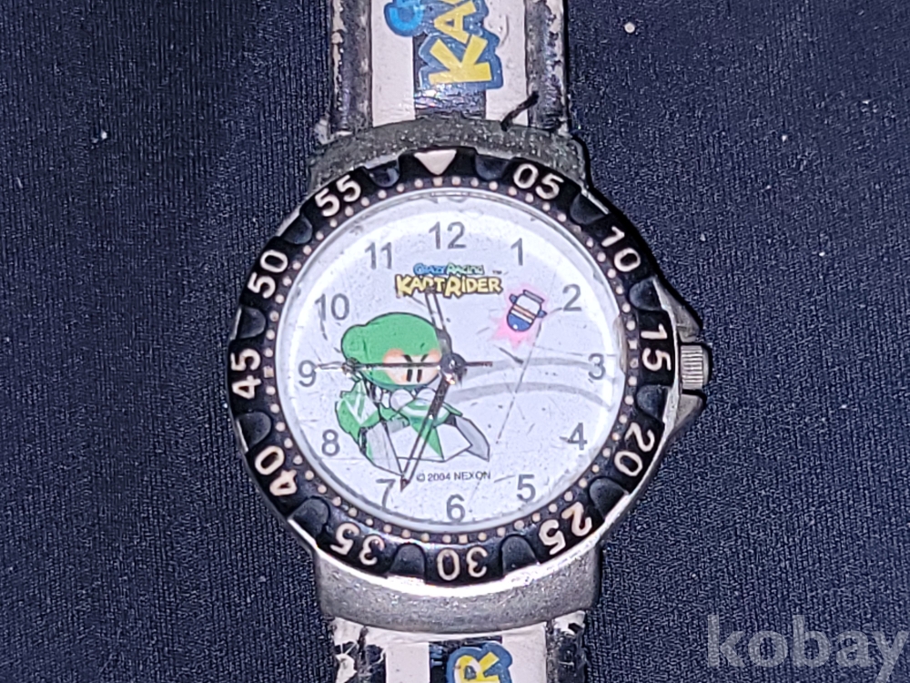 빈티지 세월 감이 느껴지는 희귀한 추억의 게임 카트라이더 초창기 로고가 있는 카트라이더 손목시계입니다.