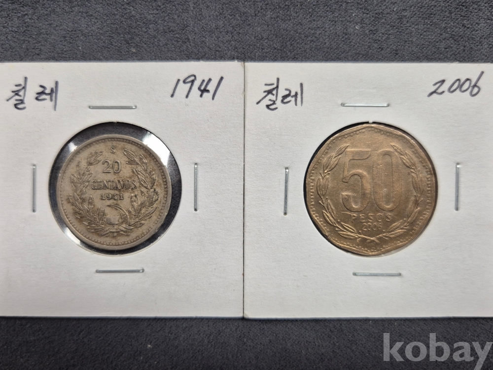 [해외주화] 칠레 1941년 20 센타보스/ 2006년 50 페소 주화 2종