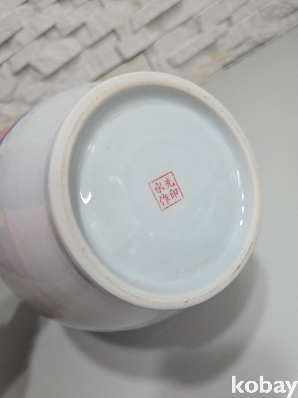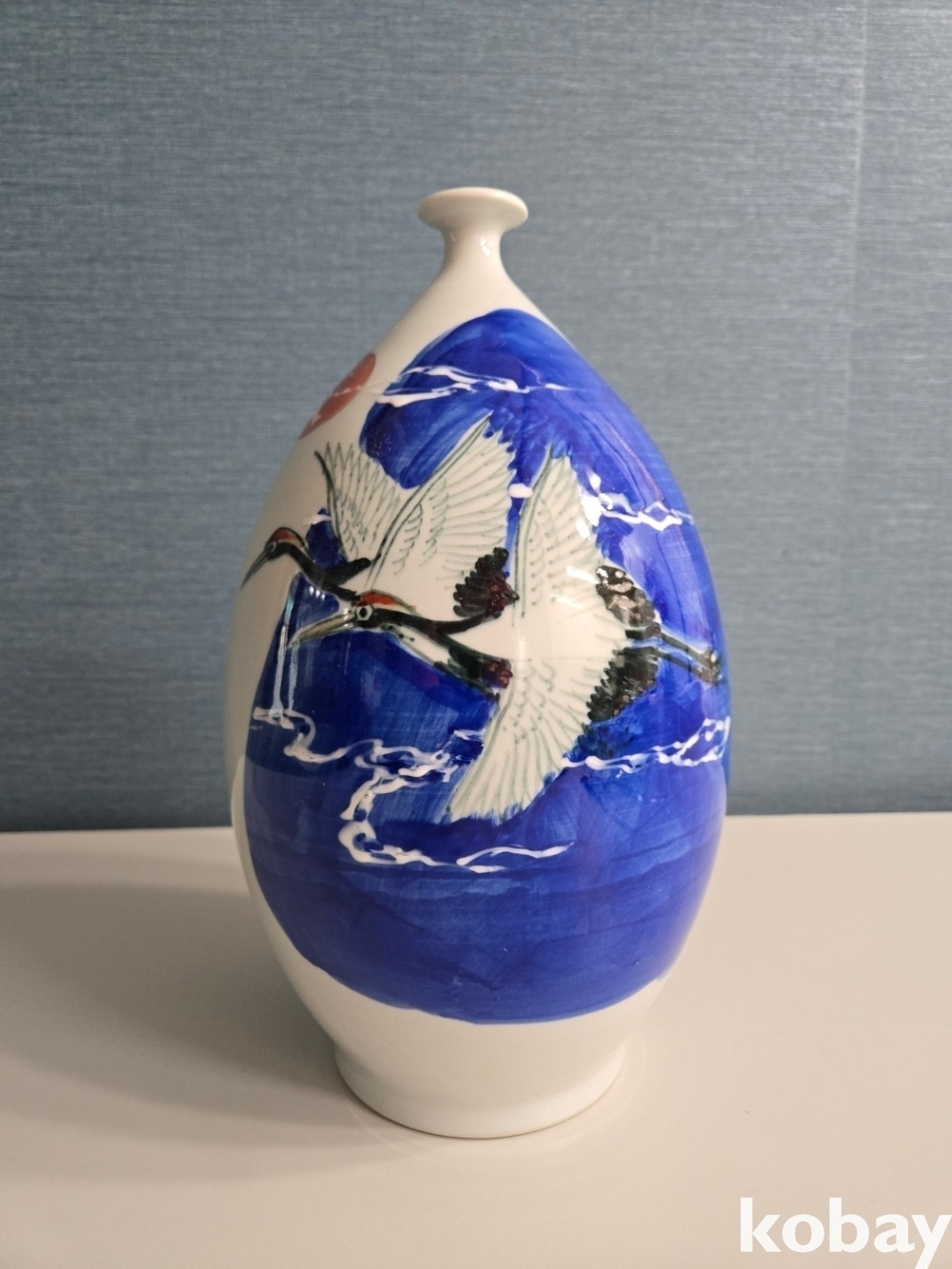 학 문양이 아름답게 표현된 입이 작은 도자기 입니다.
