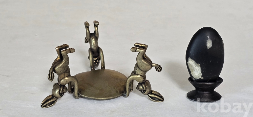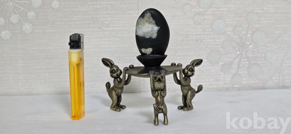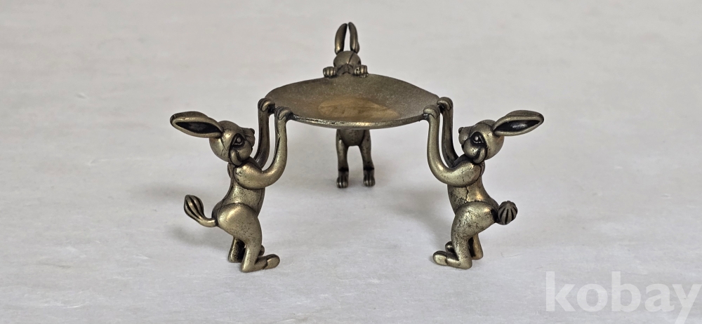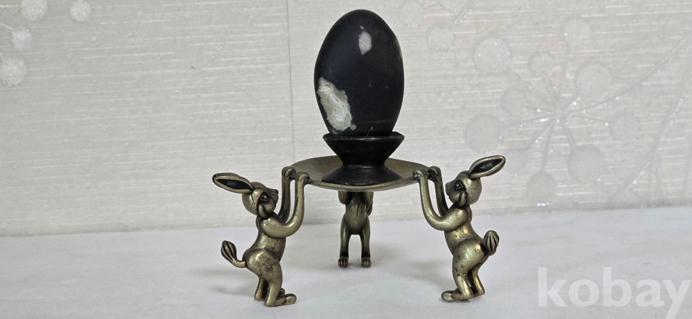 @. 옛날 오석 깨돌 월석을 동(브론즈) 토끼 받침에 연출.