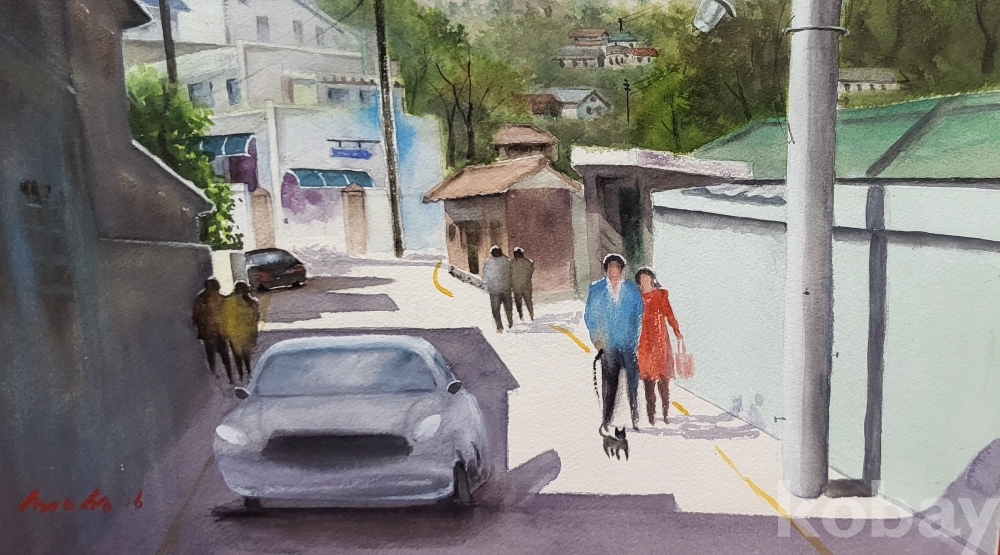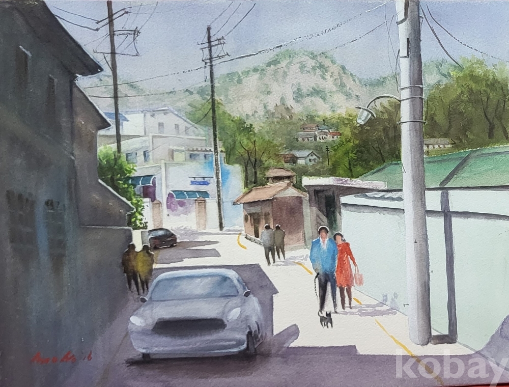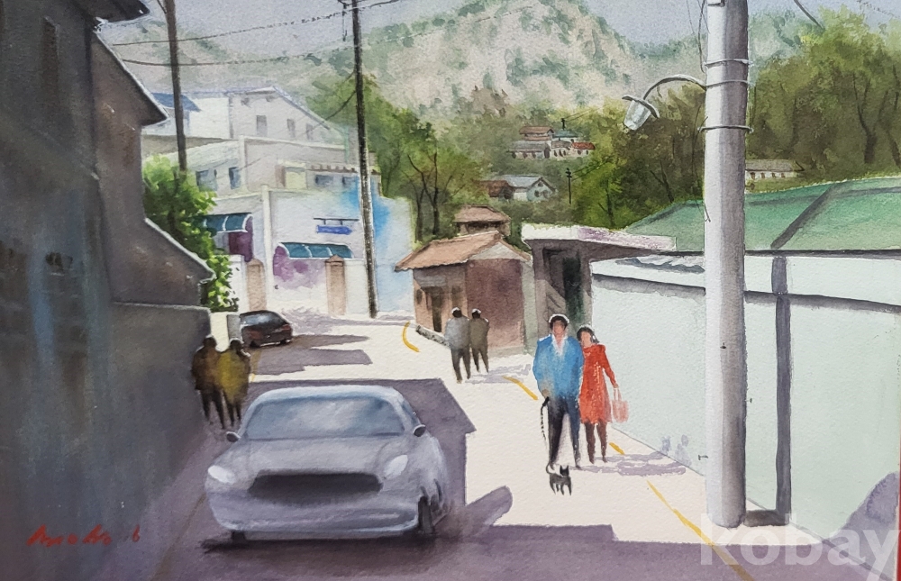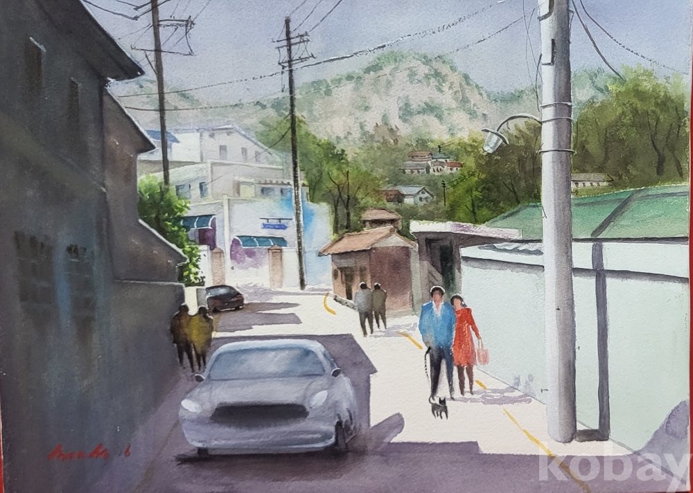 작가의 사인이 보이는 켄버스 유화 풍경화 10호 입니다,