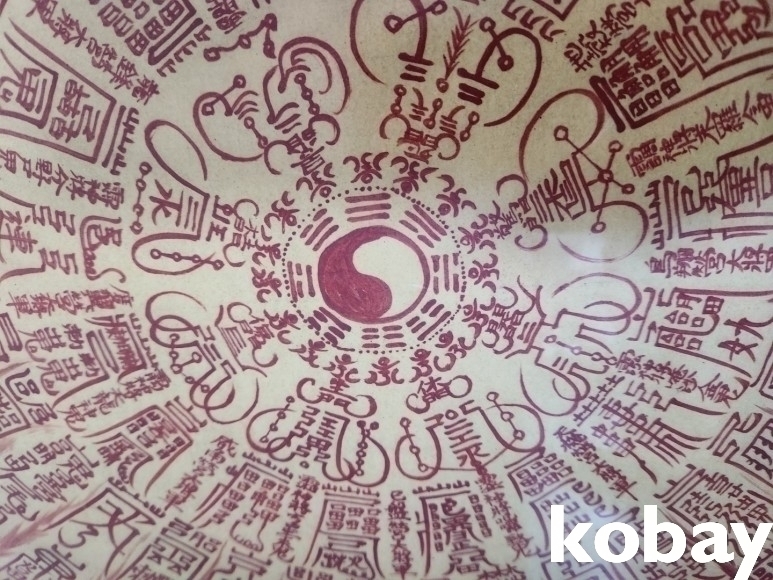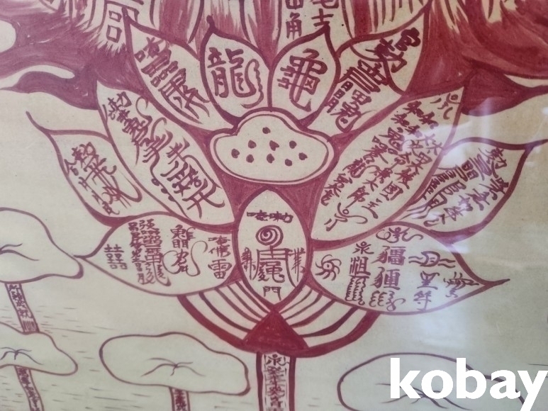 연꽃, 태극 문양에 불꽃 모양의 그림 액자 입니다.