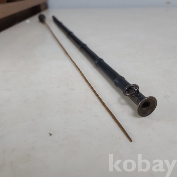 예전 곰방대를 청소하는 도구입니다 미사용으로 양호하며 고급스런 장식과 검은 대나무 오죽으로 제작하였습니다