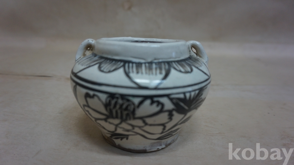 ◈◈민국시대../백자 양고리 철화,ㅡ''모란문,ㅡ''작은 단지 호 한점◈◈