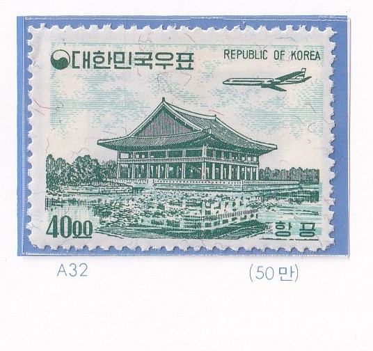 - 한국우표앨범 모음展 - 신 [원]화 우정 무늬 항공 - 경회루 1964년