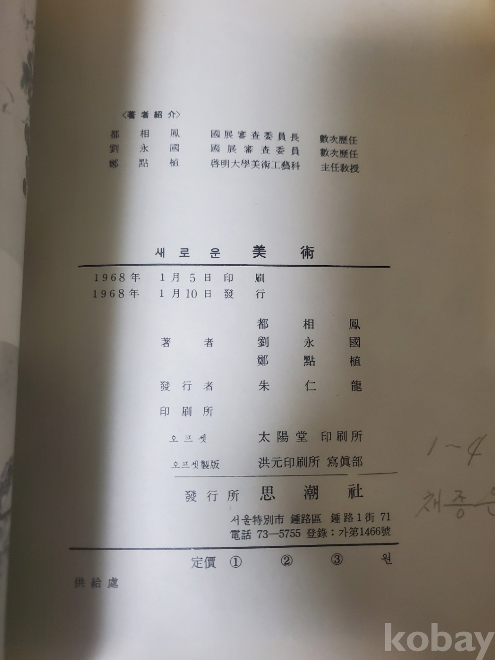 1. 새로운 미술 1, 도상봉 유영국 정점식 공저, 사조사, 1968년, 44쪽, 상태 상, 사진 참조