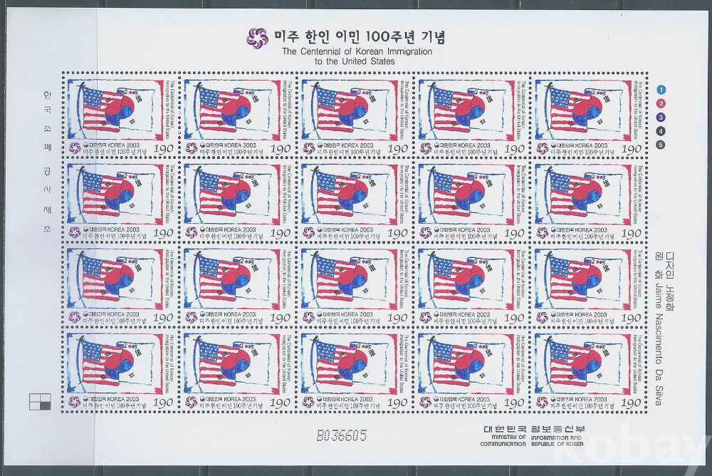 (한국전지-78)2003년미주한인이민100주년기념(미사용제)-MNH, VF