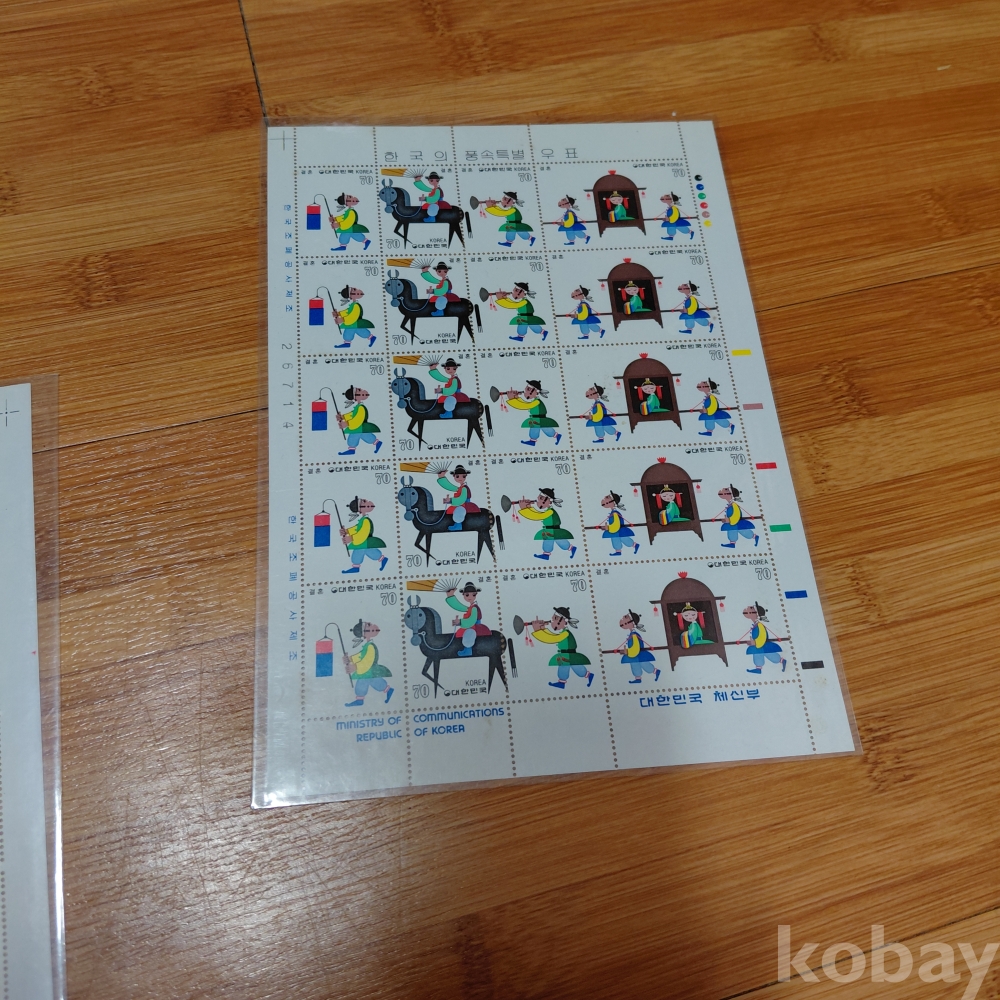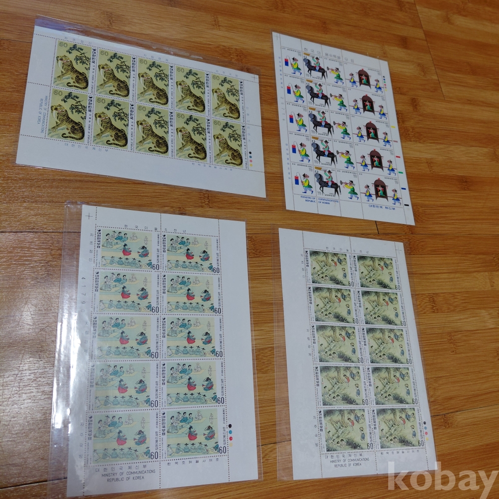 한국의 풍속특별 우표 등 전지우표 네장일괄 올려드립니다