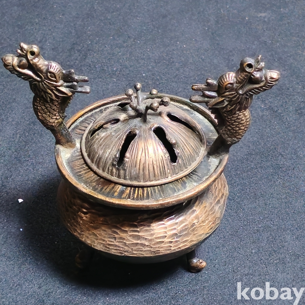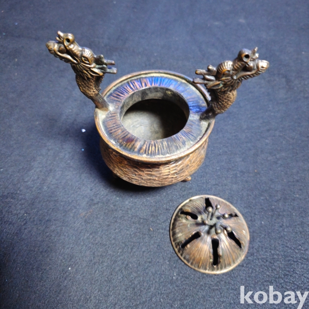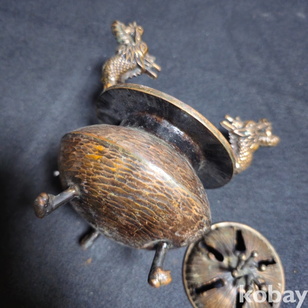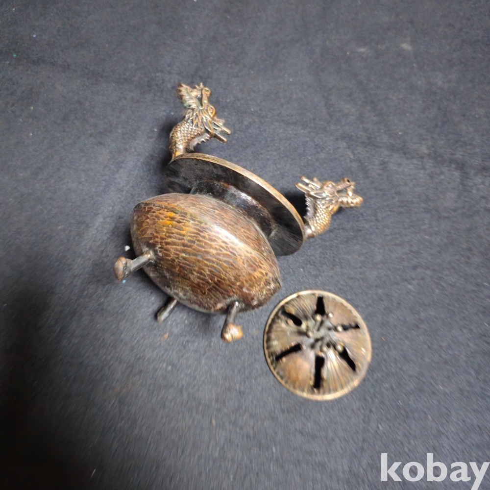 (((근현대사자료))) 오래전 龍2마리모습 금속 향로