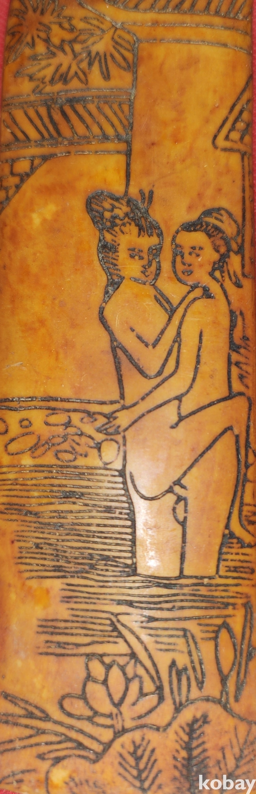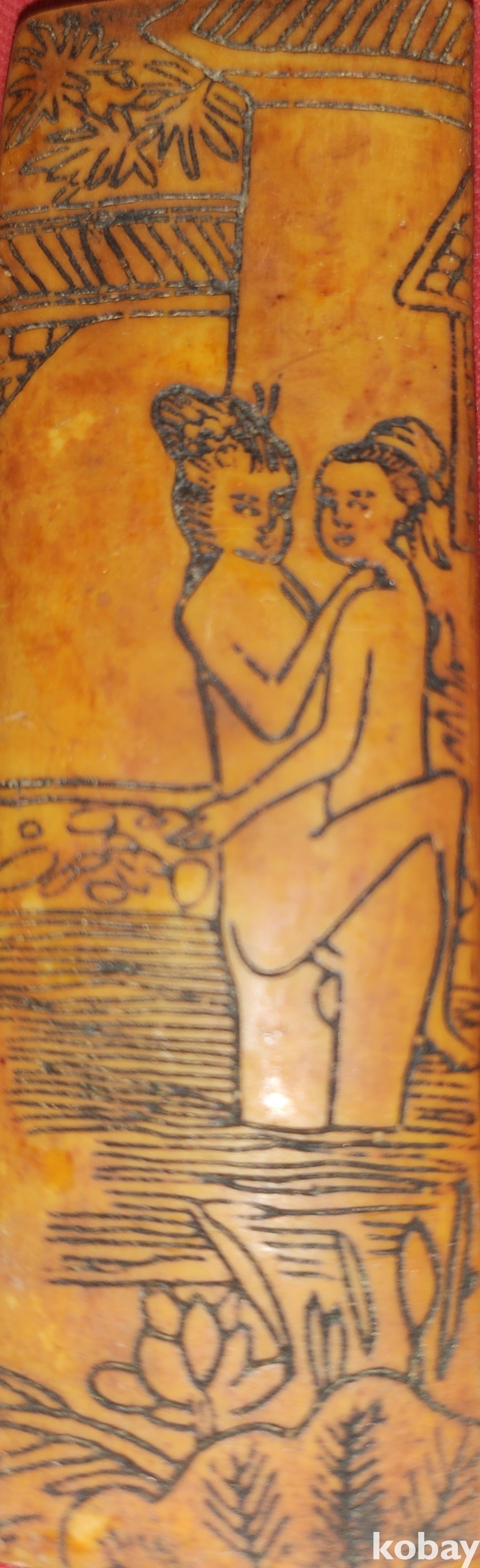 우각(牛角)으로 만든 남녀 애정행각을 음각으로 새겨진 뿔(角)조각품입니다,