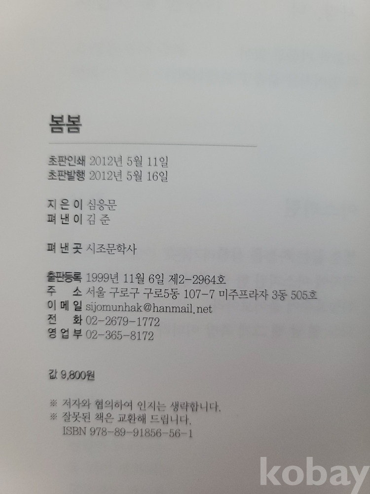 심응문(충청남도 당진: 1955) 저자서명 시집.