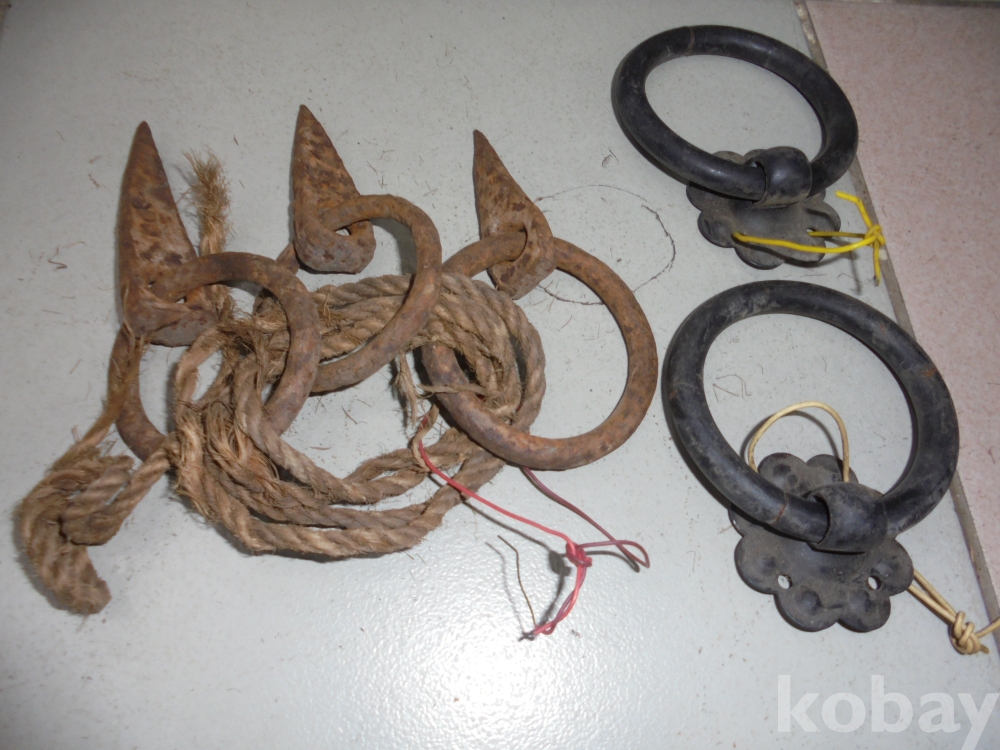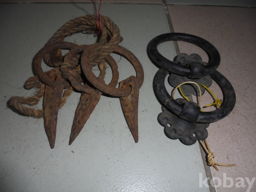 근대 한옥문에 사용하는 녹이없는 무거운 무쇠문고리 2점과 오래되여 녹이 많은 한옥문용 무쇠 문고리 3점 총5점