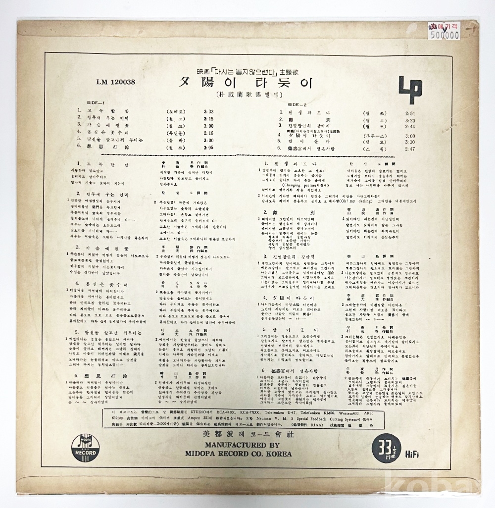 상품 설명 | Side A 1. 고독한 밤 2. 앵무새 우는 언덕 3. 가슴에 핀 꽃 4. 봄 실은 꽃수레 5. 당신을 알고난 뒤부터는 6. 상사타령 Side B 1. 첸징파트나 2. 이별 3. 진열장 안의 강아지 4. 석양이 타듯이 5. 밤이 운다 6. 덕수궁에서 맺은 사랑 | ||