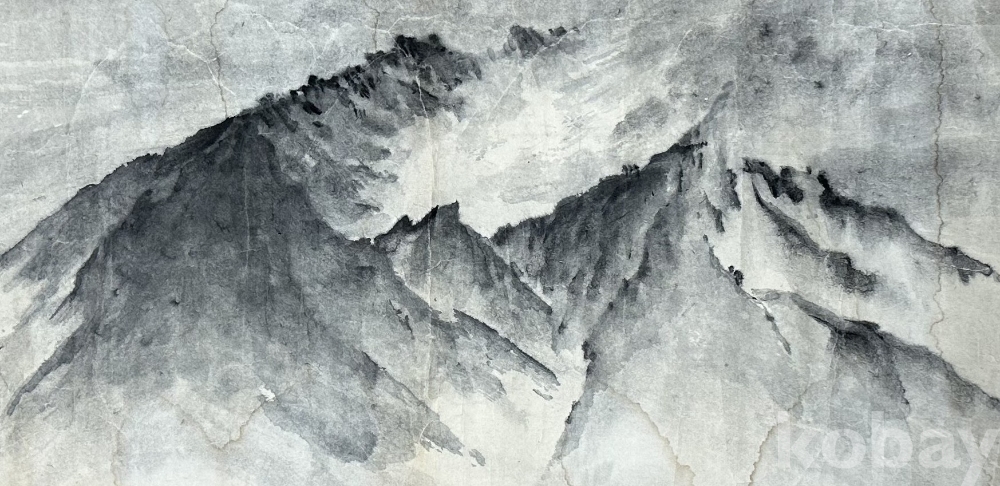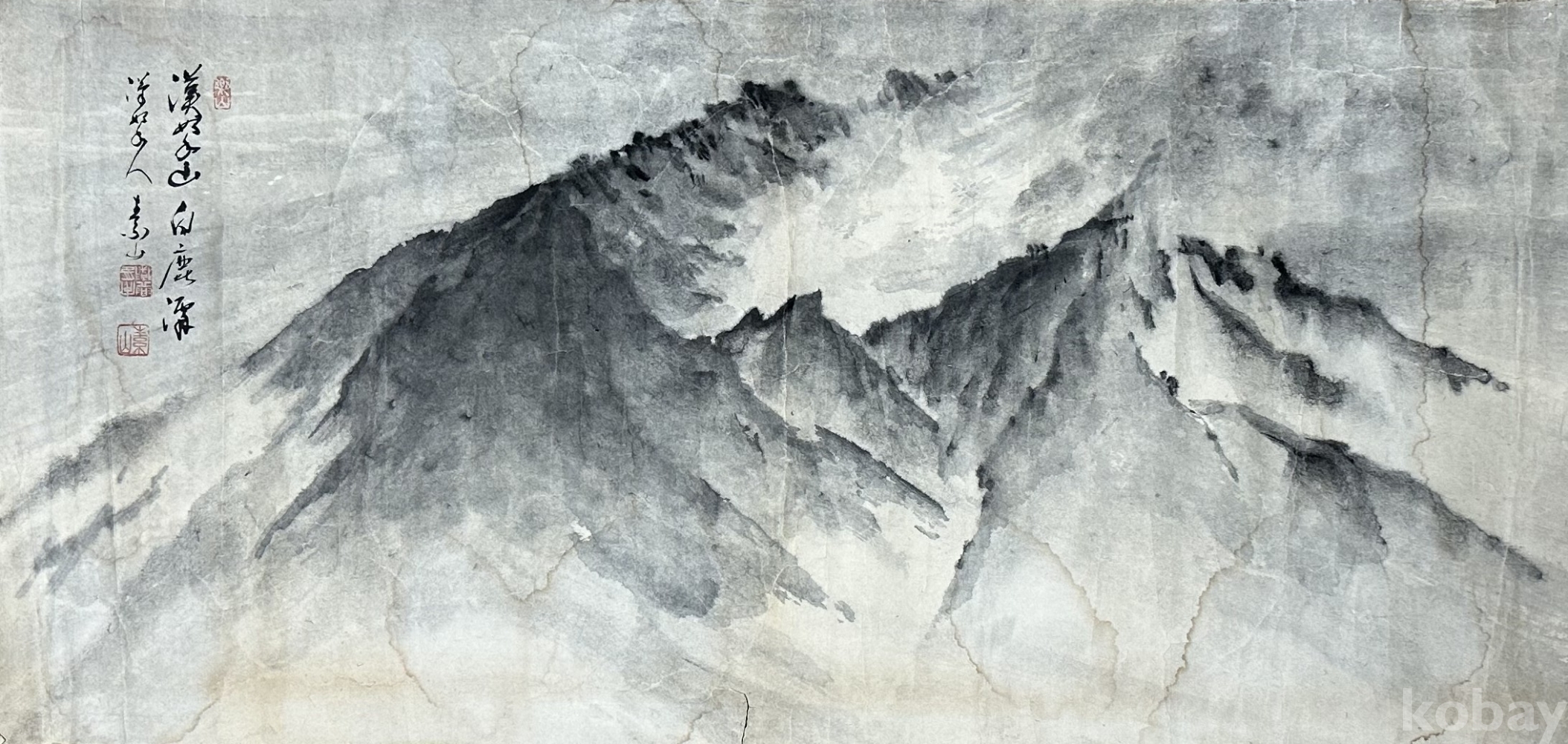 이 작품은 깊은 산맥의 굴곡과 운무(雲霧)의 흐름을 먹의 농담으로 표현한 산수화입니다. 농묵으로 산의 중량감을 드러내고, 담묵과 여백으로 안개와 구름의 유려한 움직임을 묘사하였습니다.