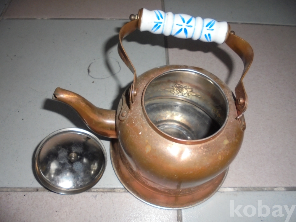 잘보관되여 질이잘들고 무거우며 사용 전시 보관에좋은 고급으로만든 상태완벽한 구리유기 주전자