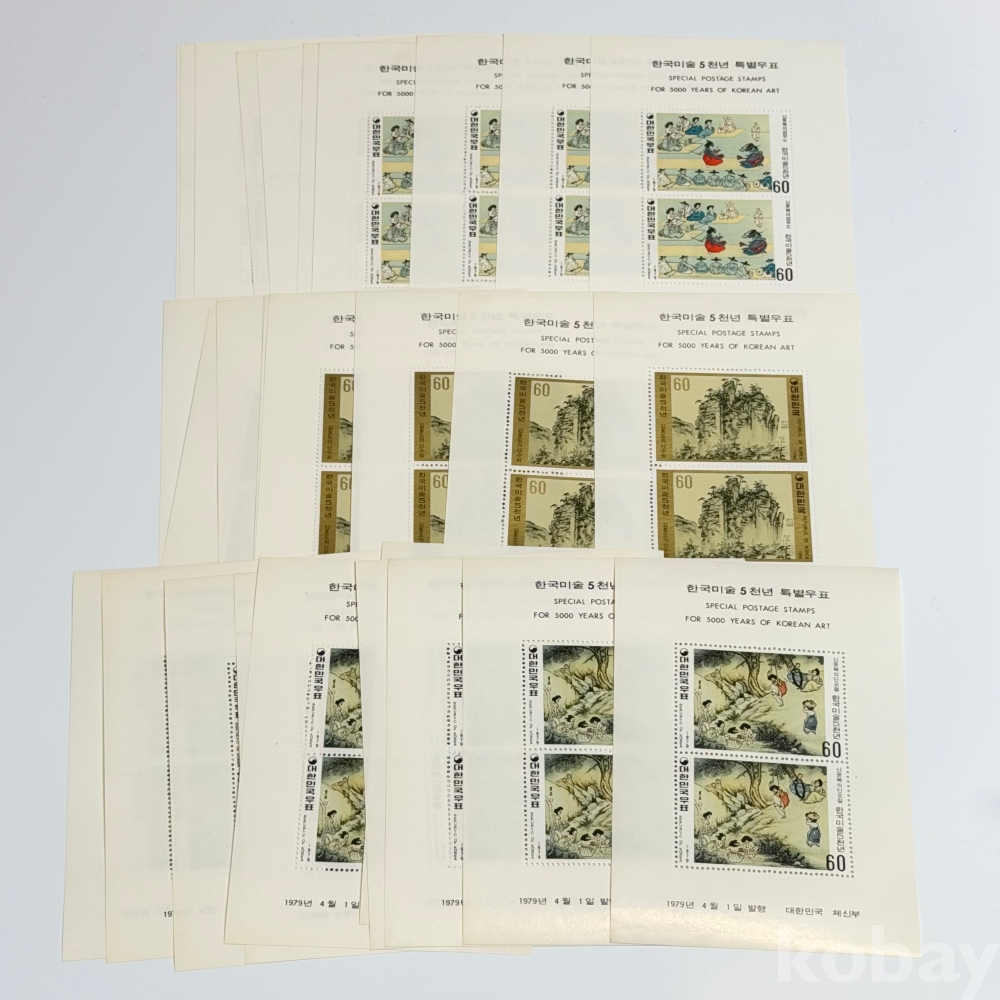 1979년 한국미술 5천년 특별우표 시트 3종 (30매)
