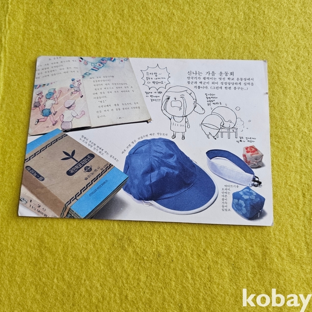(((근현대사자료/사진엽서))) 국민학교노트/운동회모자등 사진담긴 사진엽서