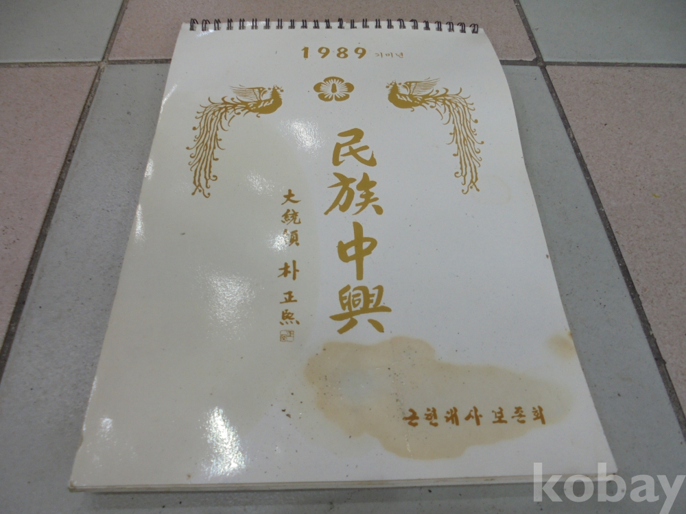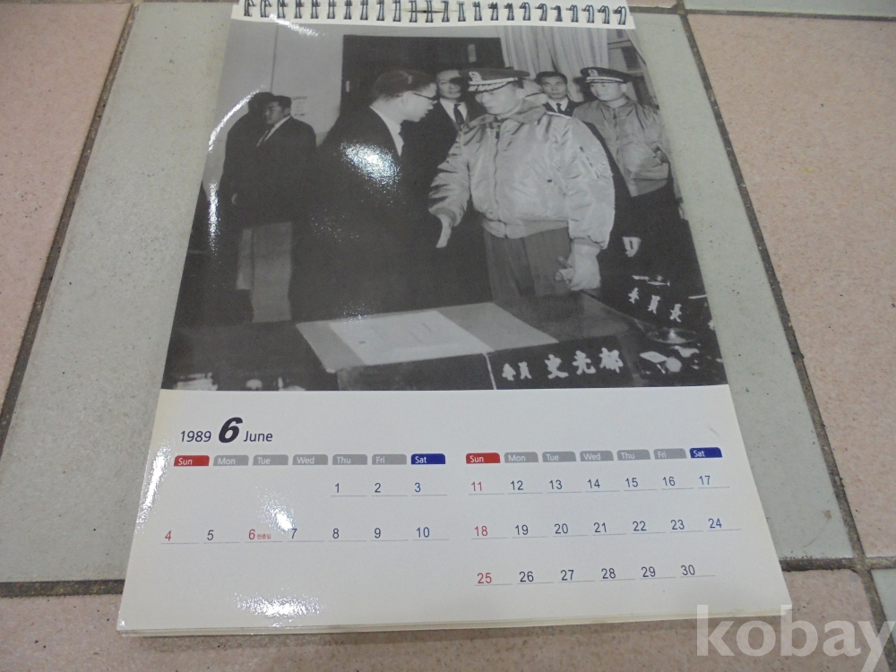 근현대사보존회에서 박정희 대통령을 잊지못하여 1989년 기미년에 민족중흥구호로 박정희가 일하는 흑백칼라 사진 12장 달력