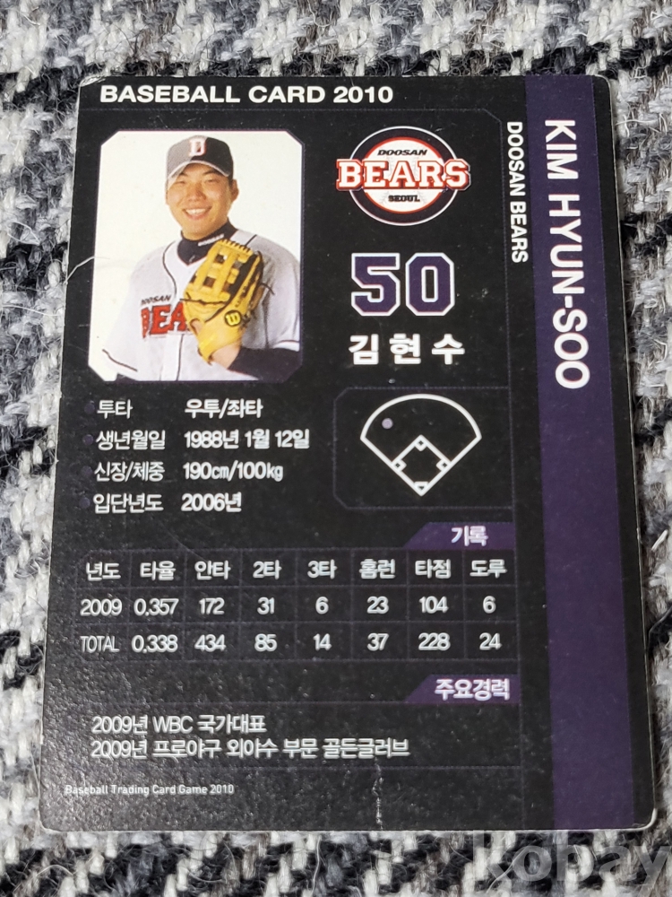 KBO가 공식카드를 발매하지 않던 2010년 해적판으로 발행되었던 희귀 프로야구 트레이딩카드 입니다.