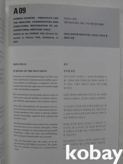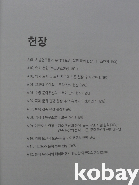 (ICOMOS) < 이코모스 헌장 선언문집 > ( 역사 문화유산 보존 관련 기준 자료)