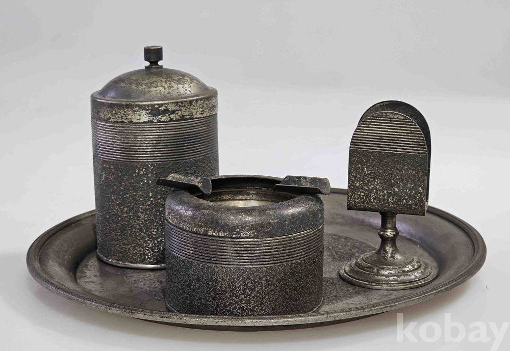 쟁반과 담배합, 재털이, 성냥 거치대의 조합으로 구성품 모두 있습니다.
