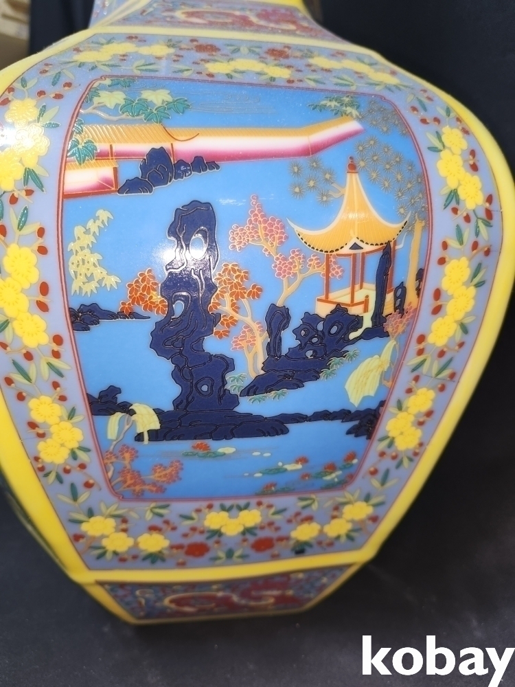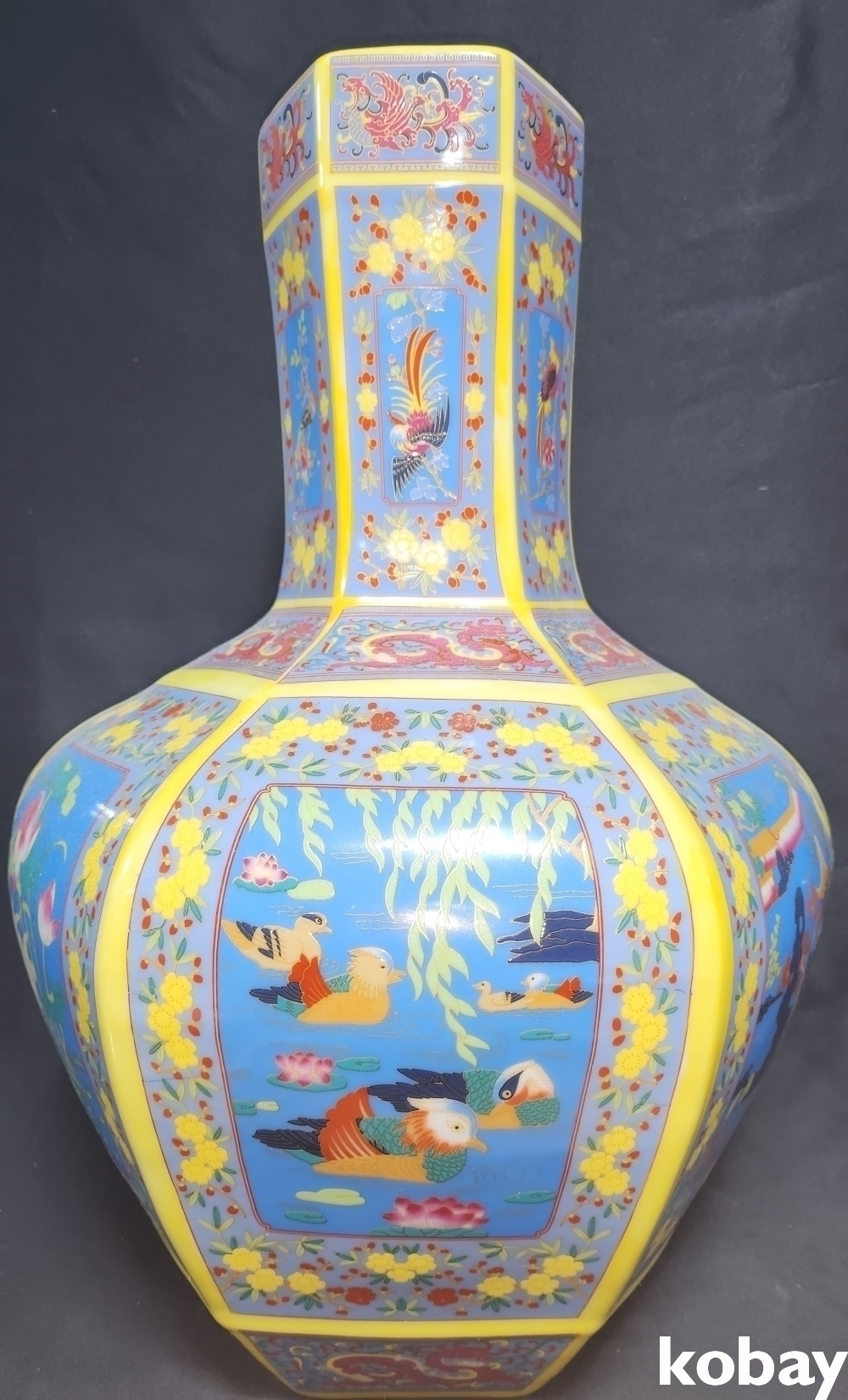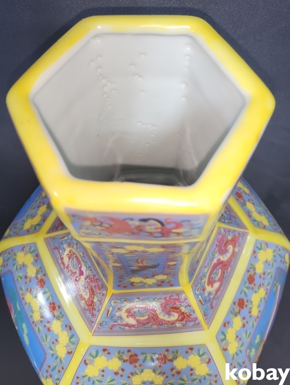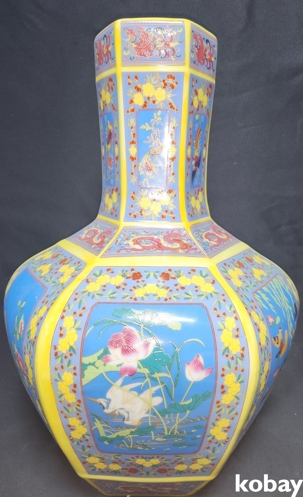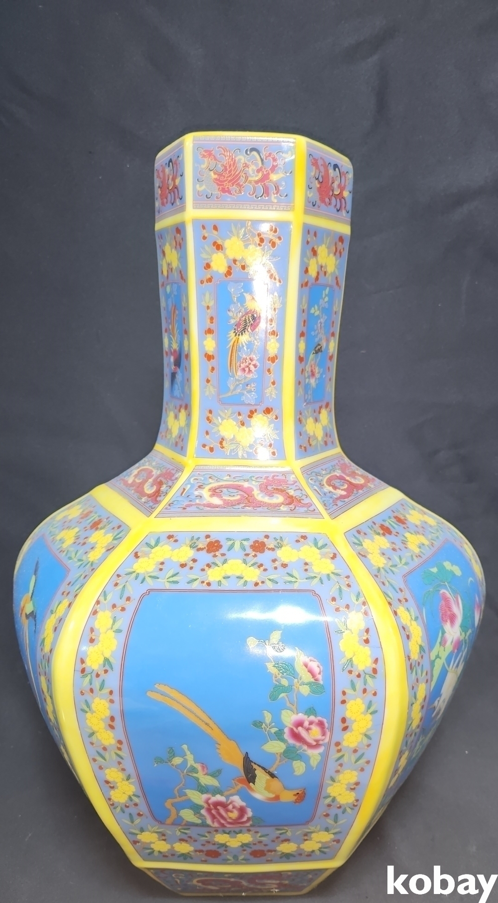 건륭어제 홍용 화조문양 6각 대병입니다,