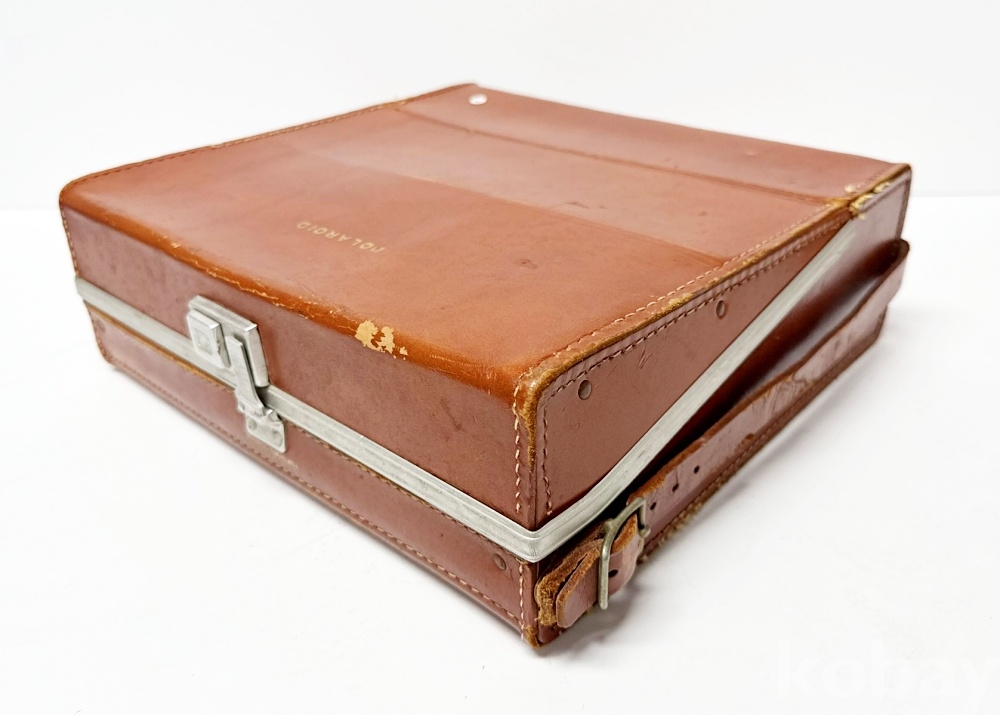 상품설명 | 미국 Polaroid사 제작 '폴라로이드 랜드 일레트릭 아이 900(polaroid land electric eye 900) camera' 세트이다. 1. polaroid land electric eye 900 camera / 14.5 x 24cm 2. wink-light flasher 256 3. flashbulbs 2점 4. 미사용 앨범 5. 설명서 등 7종 6. 프린트 코터 및 롤러 총 2점 7. 오리지널 가죽 케이스 / 31 x 28.5cm / 양 측면 상하단 올 풀림 및 가죽 손잡이 한쪽 버클 부분 수리 흔적 있음 | ||