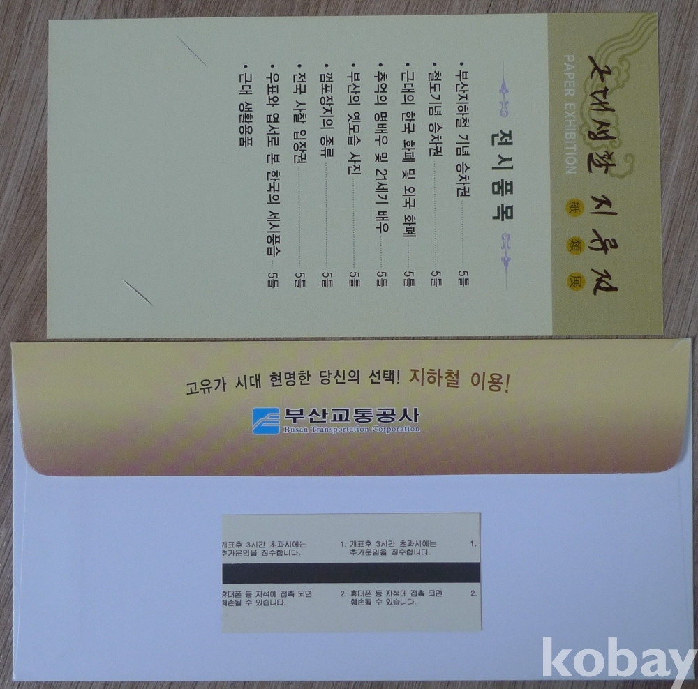 2006년 부산시 근대 유물 지의류전 기념 지하철 승차권