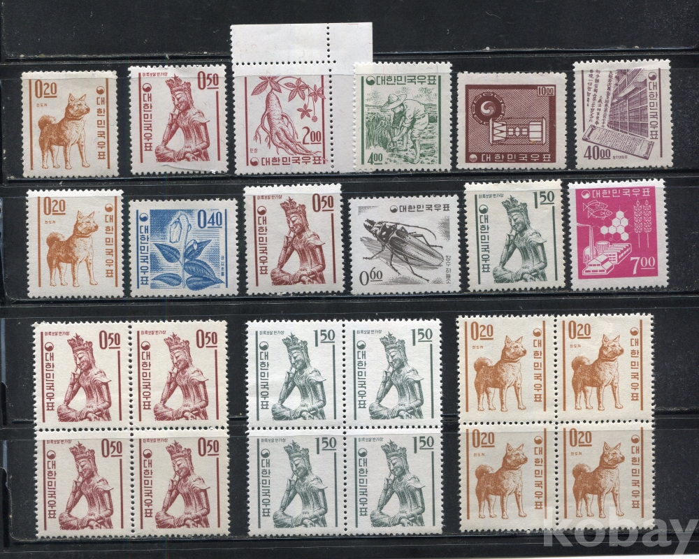 - [보통우표] 1964-66년 새원화우정마크 및 1차 국산백지 미사용 모음 (All MNH : Mint Not Hinged) : 이미지 참조하세요