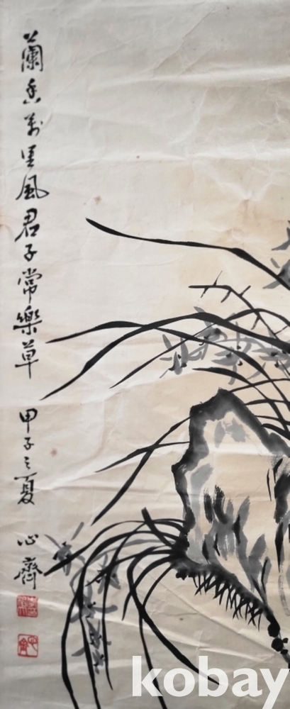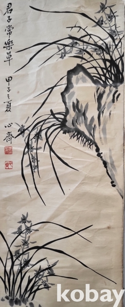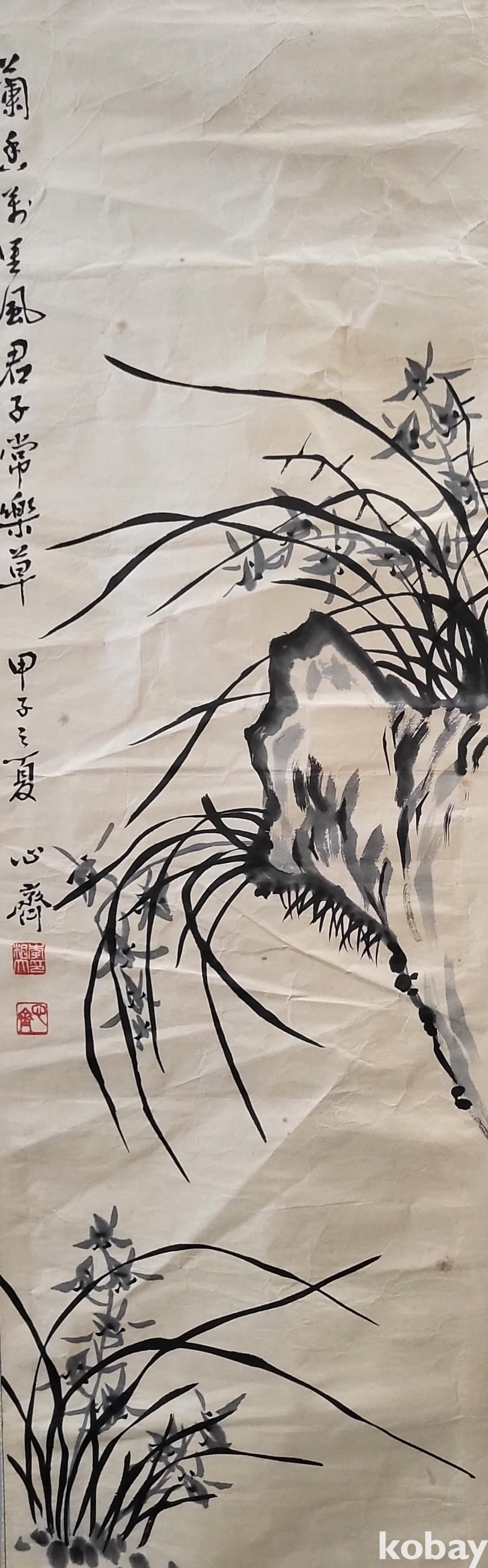 심제(心齊) 이상대(李相大, 1925~) 선생 수묵화(水墨畵)괴석에 난초그림입니다,