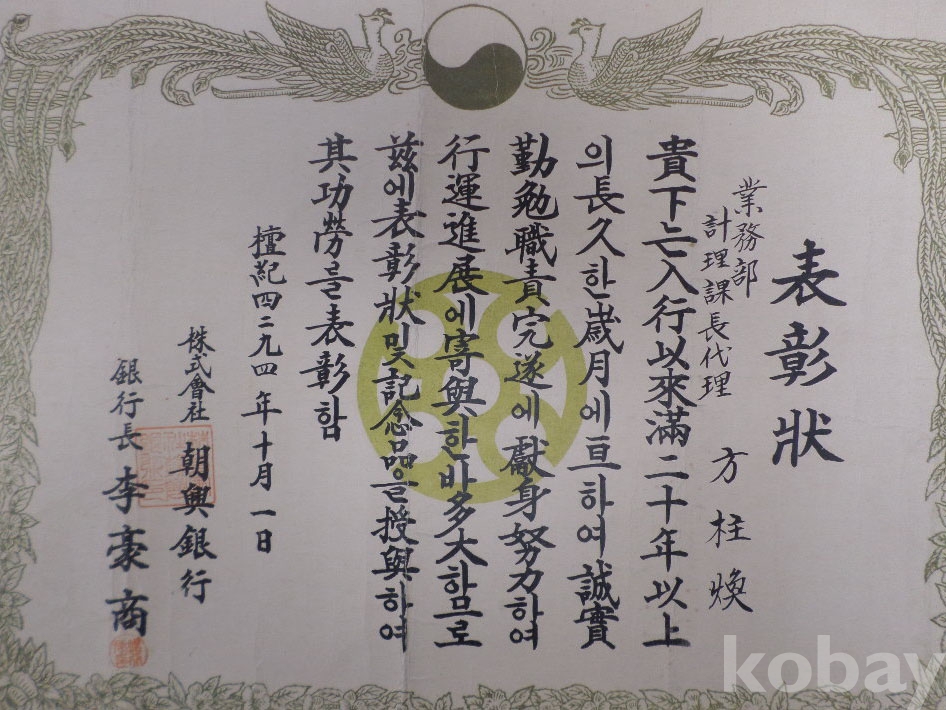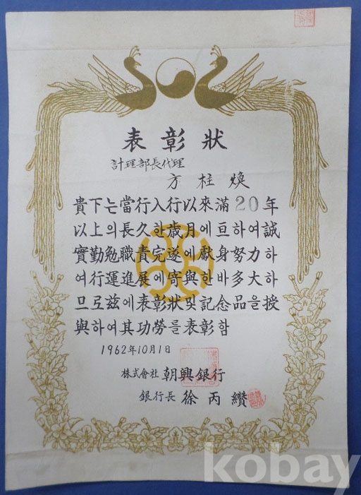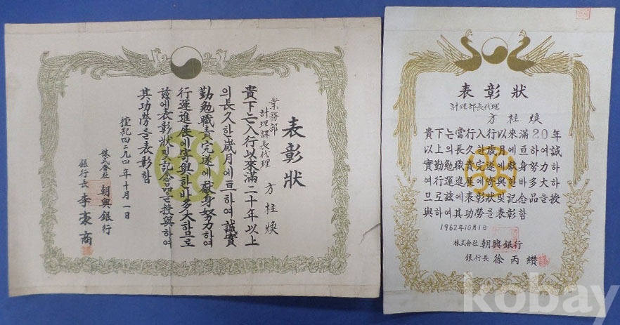 **** 朝興銀行 表彰狀/1961년, 1962년