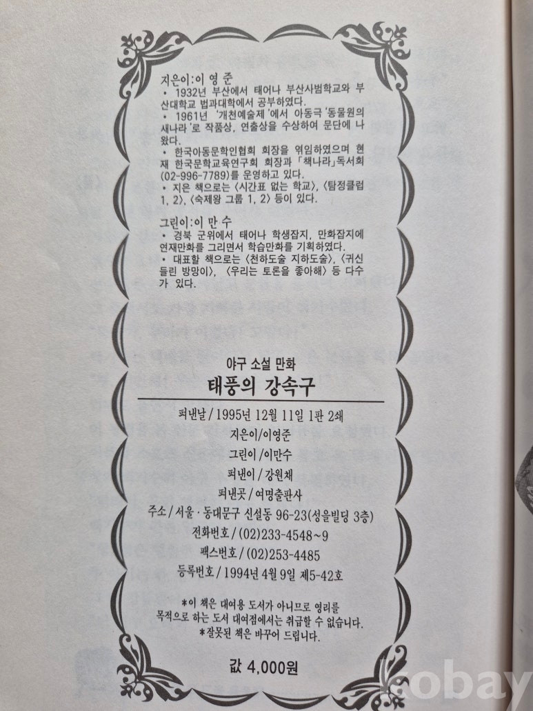 설명: 이 책은 태풍의 강속구 - 야구 소설만화 만화책 이영준 글 이만수 그림 도서입니다