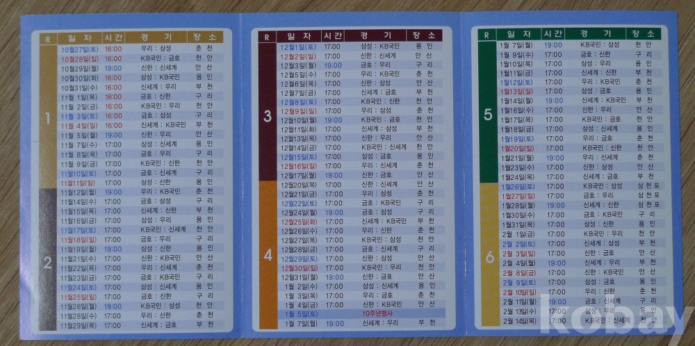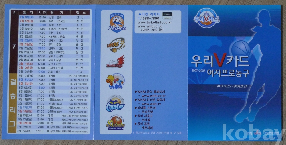 2007년 우리V카드 여자 프로농구 2007-2008 정규 경기 일정표