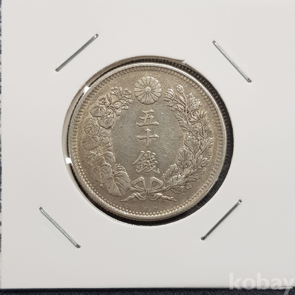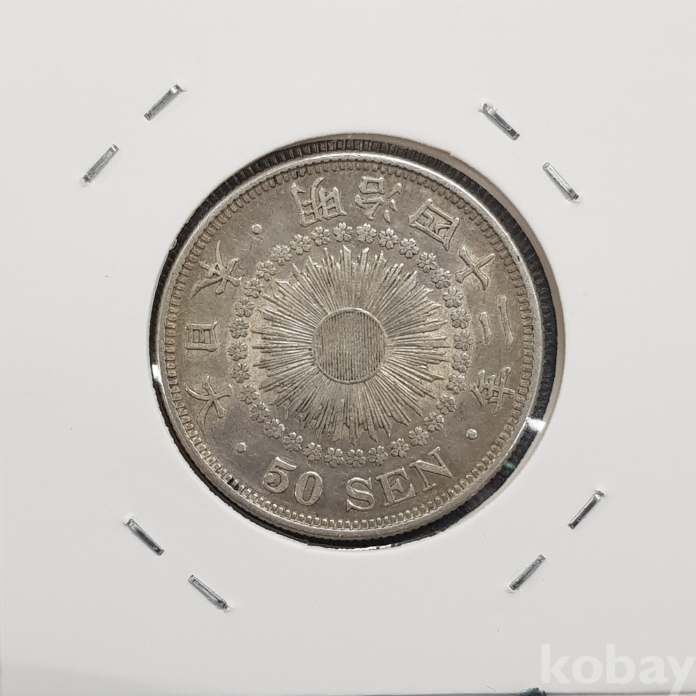 - 진품 일본 은화 - 명치 42년(1909년) 오십전 욱일 은화