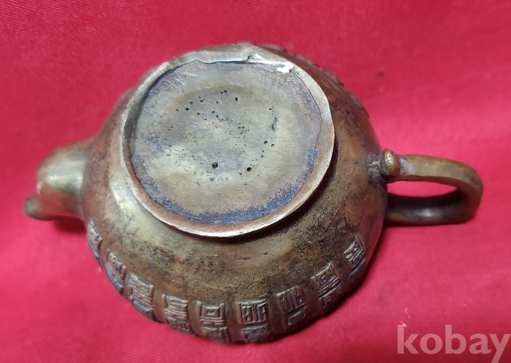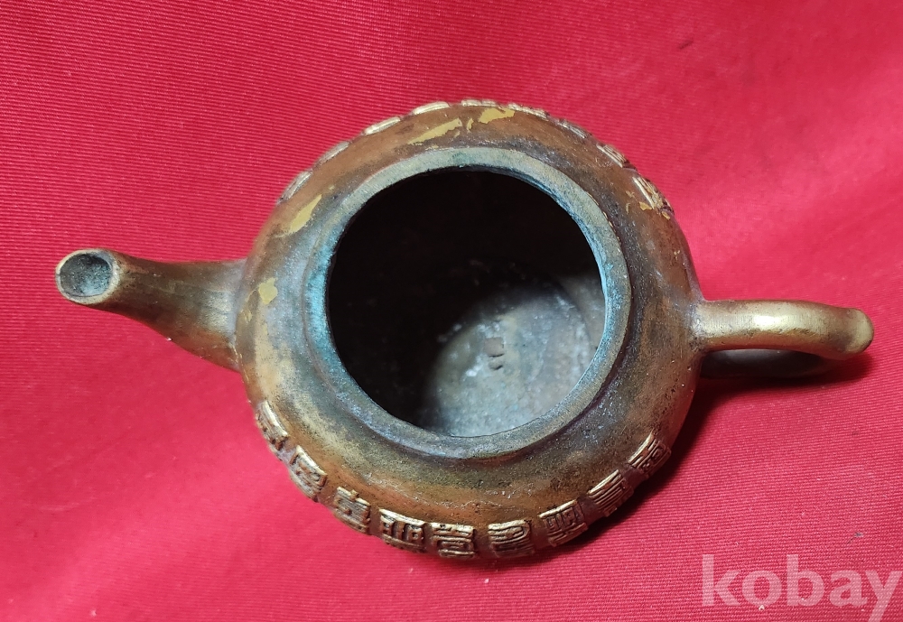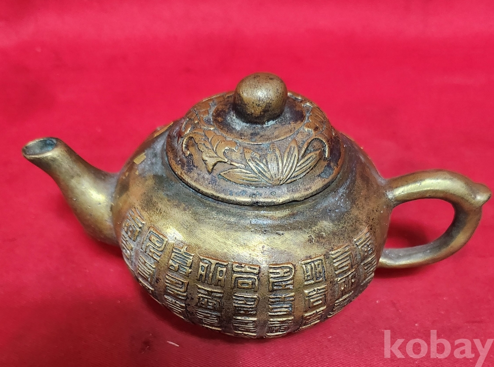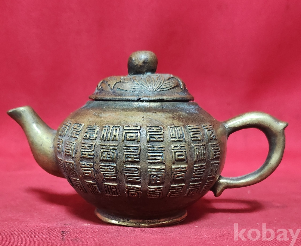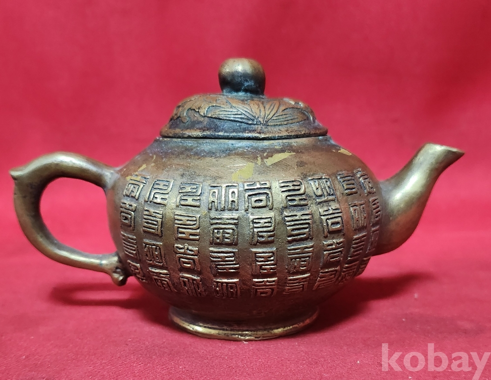청동으로 완성된 문자(文字) 문양 차(茶) 주전자입니다,