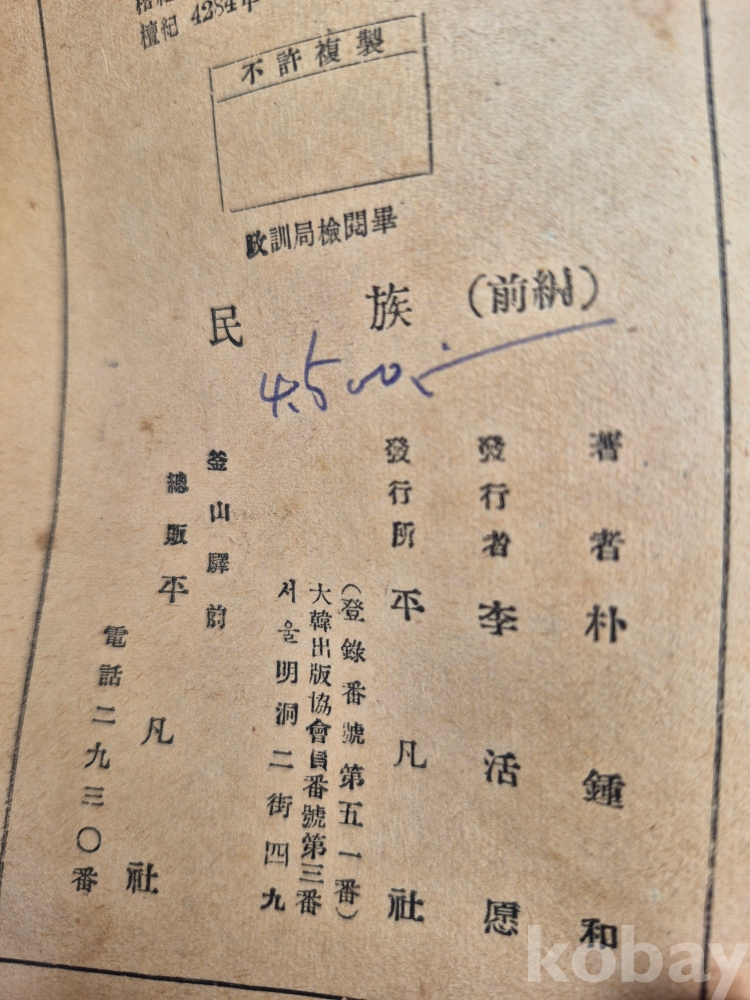 세로글. 내지 뒷면 장서인 이름있습니다. 빛바램 있지만 상태 양호한 편입니다.