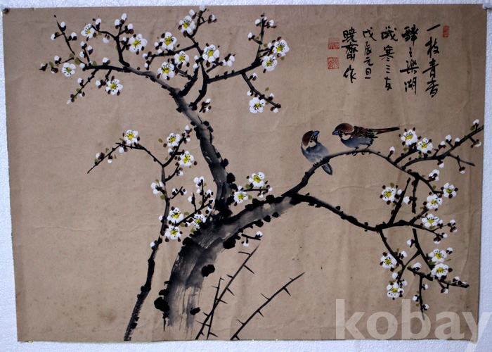 曉齋(효재) 이현우의 화조도 - 매화와 참새